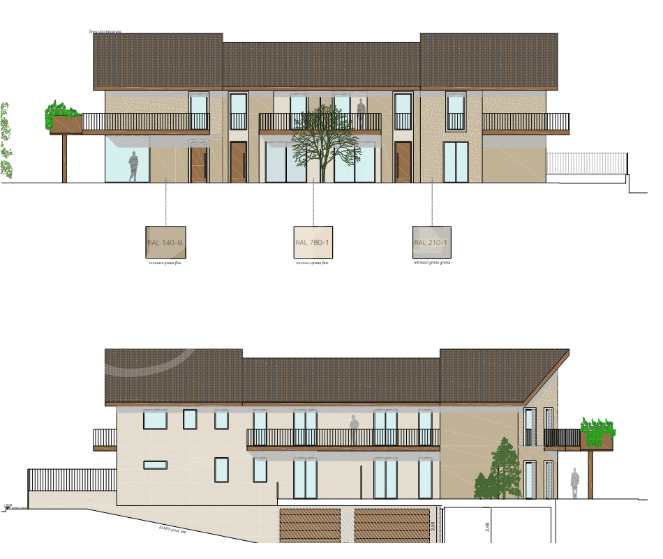 Labitazione si sviluppa su due livelli con ampia zona soggiorno molto luminosa grazie all'esposizione a sud, una cucina abitabile, un primo bagno di servizio e accesso diretto all'area esterna pavimentata e giardino piantumato sui tre lati. Il piano superiore ospita la zona notte composta da tre camere da letto e due bagni, di cui uno non finestrato ma dotato di finestra filofalda, oltre a due comodi balconi con affaccio sul verde privato.