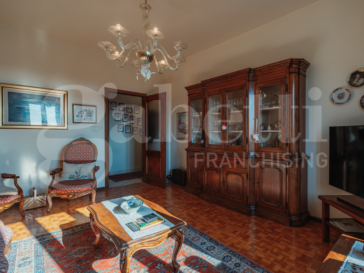 I parquet sono stati mantenuti con attenzione costante, le porte interne in legno restituiscono eleganza e durata, i serramenti in alluminio con doppio vetro migliorano comfort e isolamento.