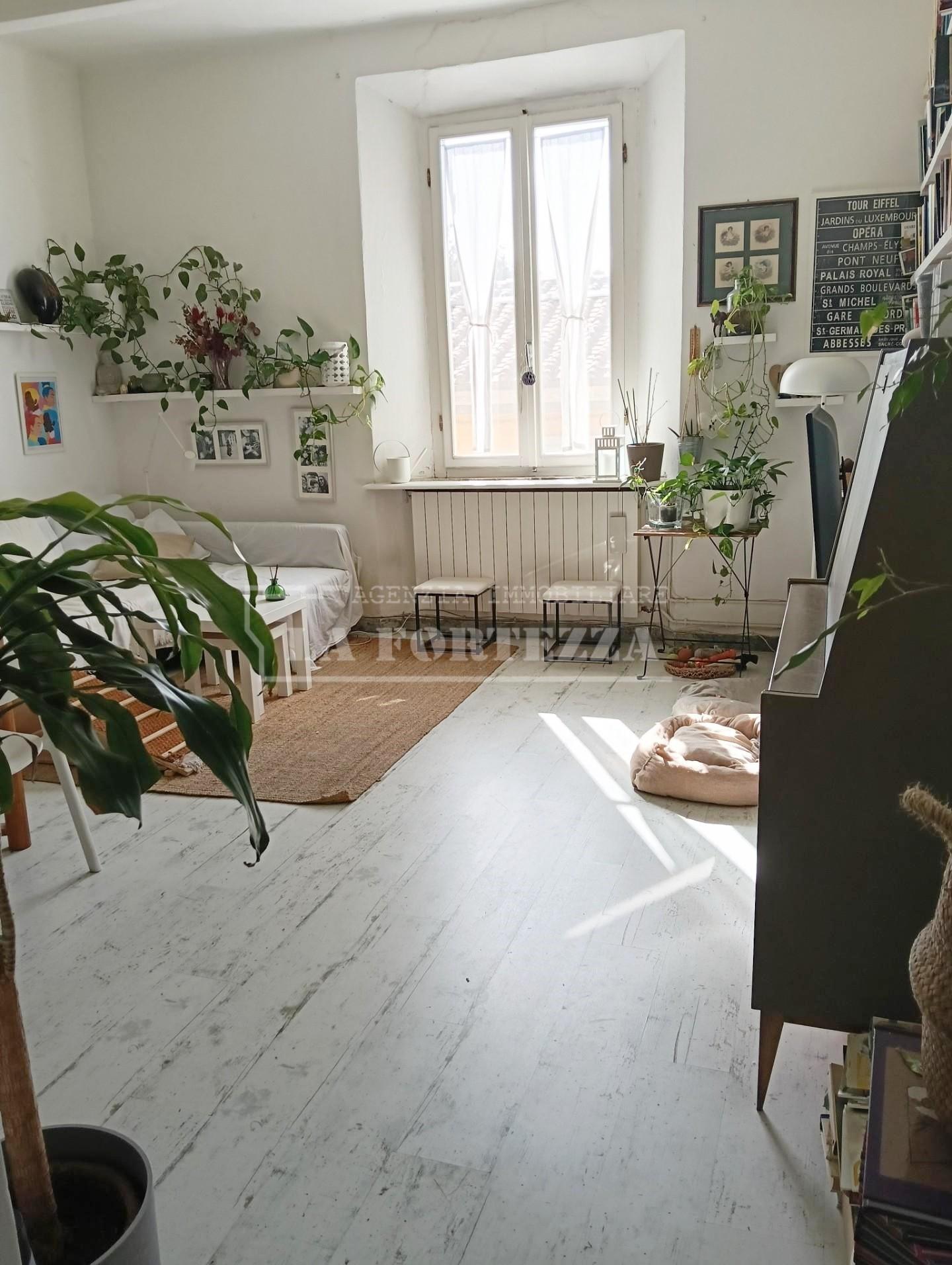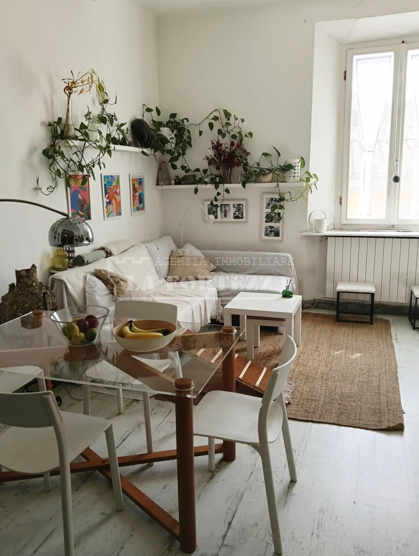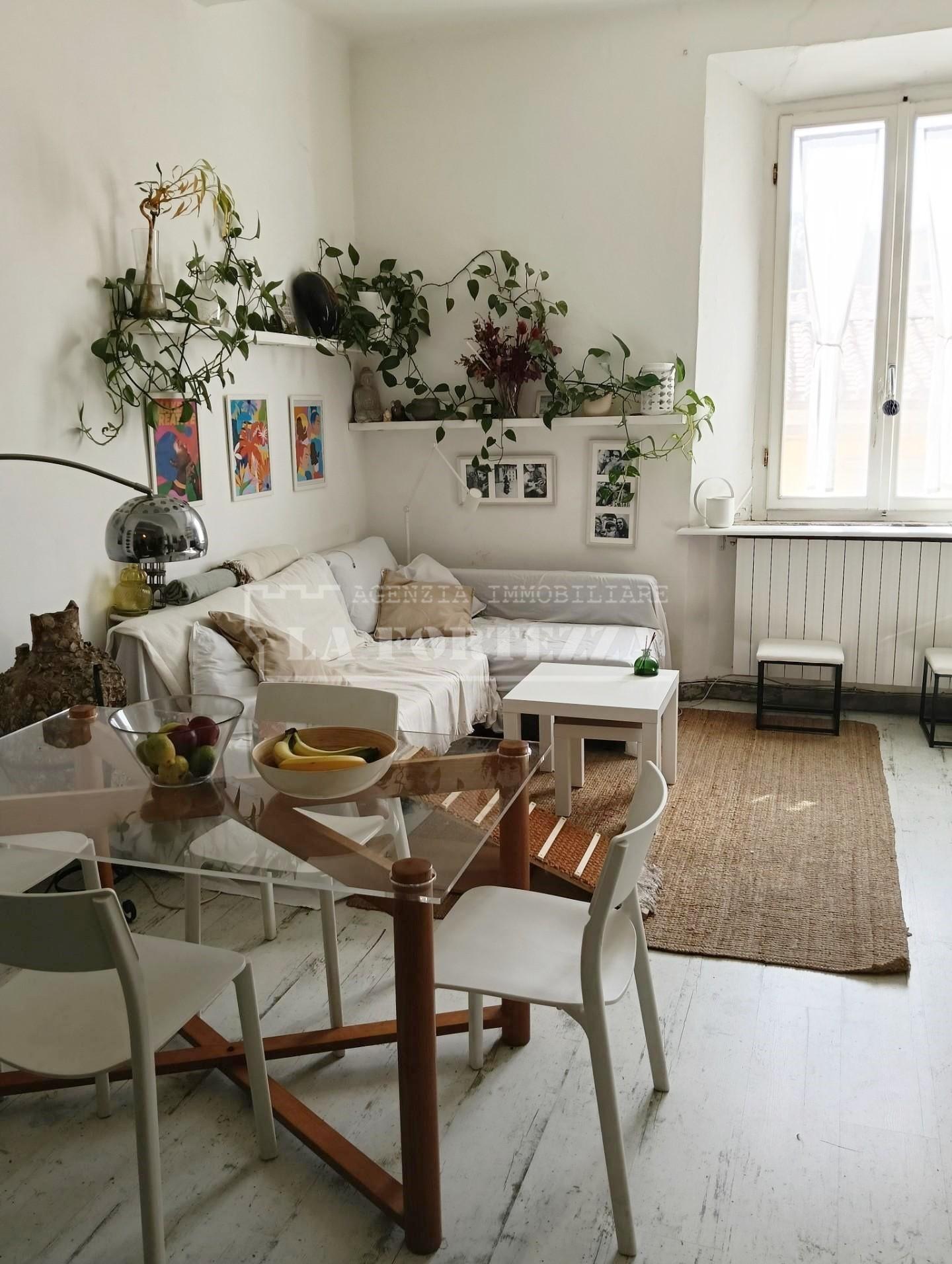 Composizione interna: ingresso tradizionale con comodo ripostiglio, soggiorno con cucina separata a vista, camera matrimoniale con splendida vista sulla cinta muraria, cameretta/studio e bagno finestrato con doccia.