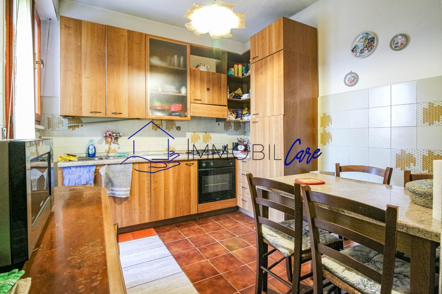 Lingresso conduce alla cucina abitabile, un ambiente funzionale e accogliente, dotato di comodo ripostiglio e balcone con pilozzo.