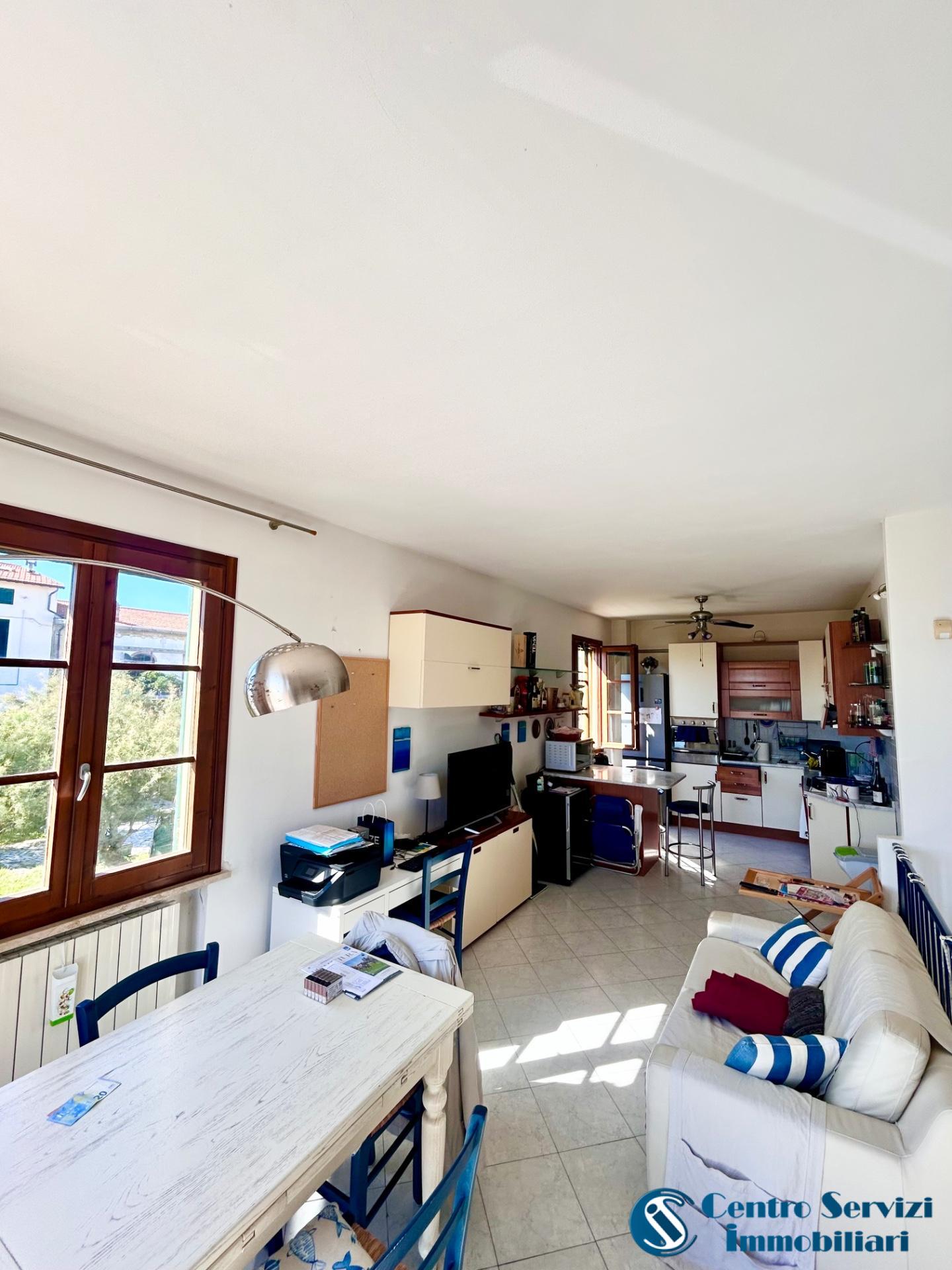 E' composto da soggiorno-cucina con terrazzo vista mare, bagno con doccia e finestra, al piano superiore ed ultimo troviamo due camere da letto matrimoniali di cui una bagno con doccia.