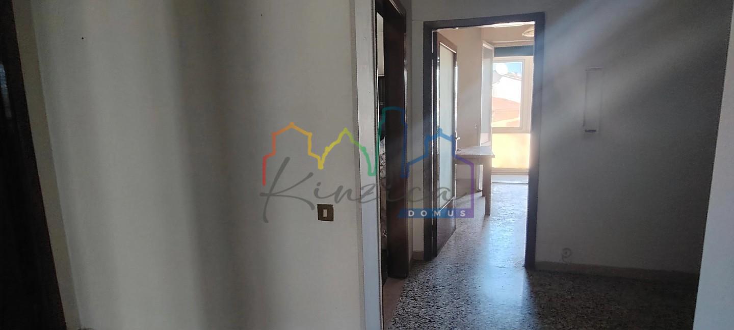 Limmobile si sviluppa con ingresso tradizionale, ampio soggiorno con balcone (facilmente utilizzabile come terza camera), cucina abitabile con secondo balcone, ripostiglio, disimpegno notte, camera matrimoniale, camera media e bagno finestrato con doccia (anni 90). Completa la proprietà, al piano terra, un garage di circa 10 mq (non adatto ad auto). Termo autonomo.