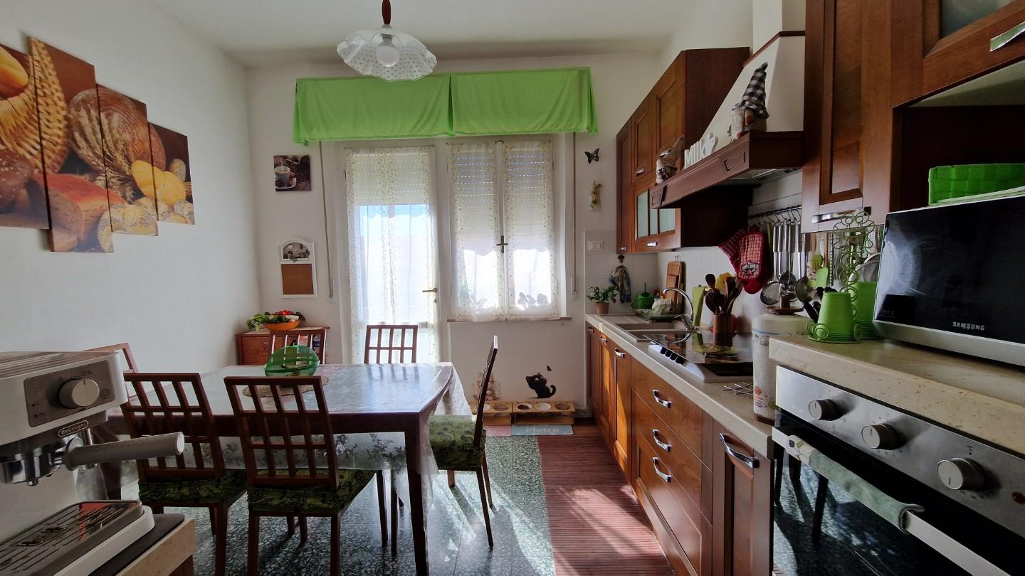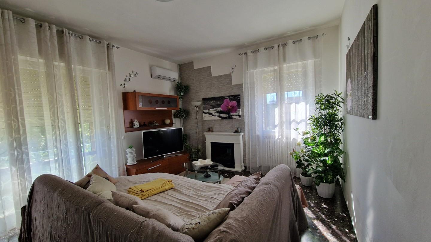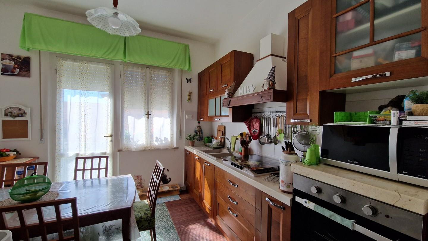 L'immobile è composto da ingresso-disimpegno, soggiorno con balcone, cucina abitabile con altro balcone, due camere matrimoniali, bagno con doccia e finestra e due ripostigli, completa la proprietà un comodo garage.
