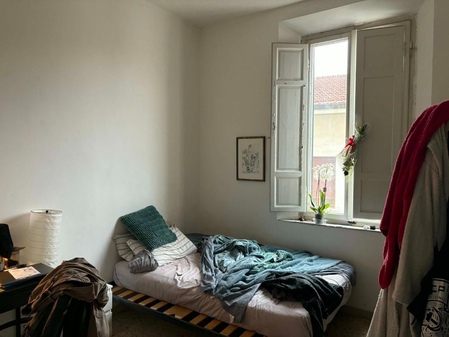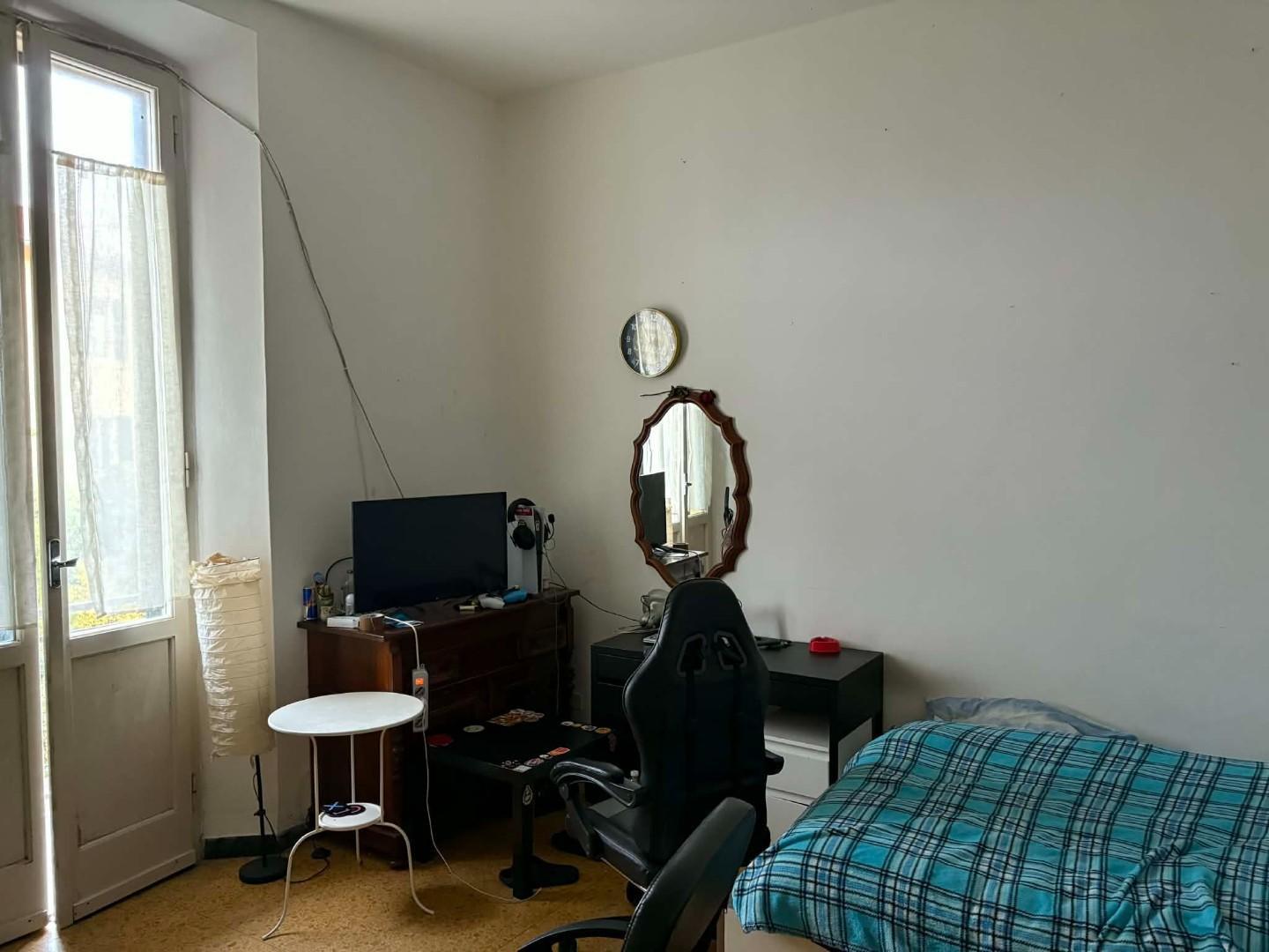 Attualmente è composto da ingresso ampio, cucina con balcone, ripostiglio, bagno con doccia e finestra e 3 camere in quanto è affittato a studenti ma viene venduto libero.