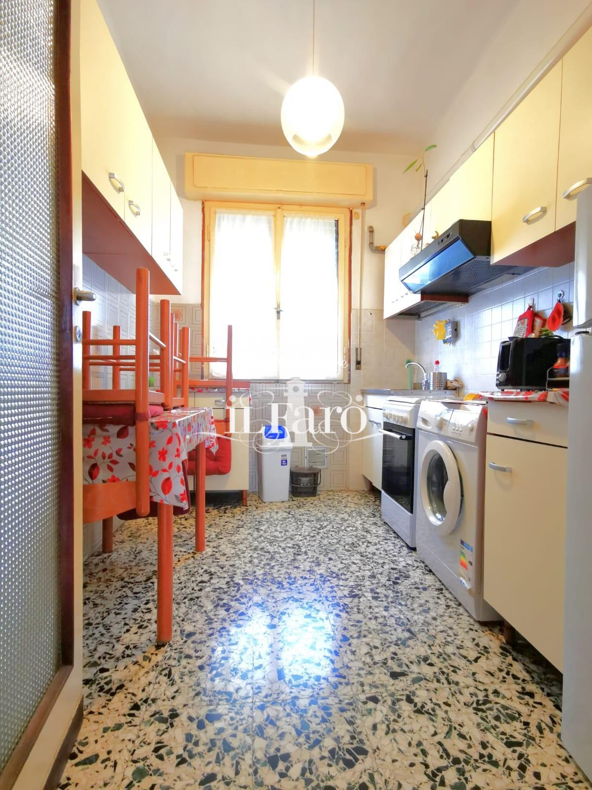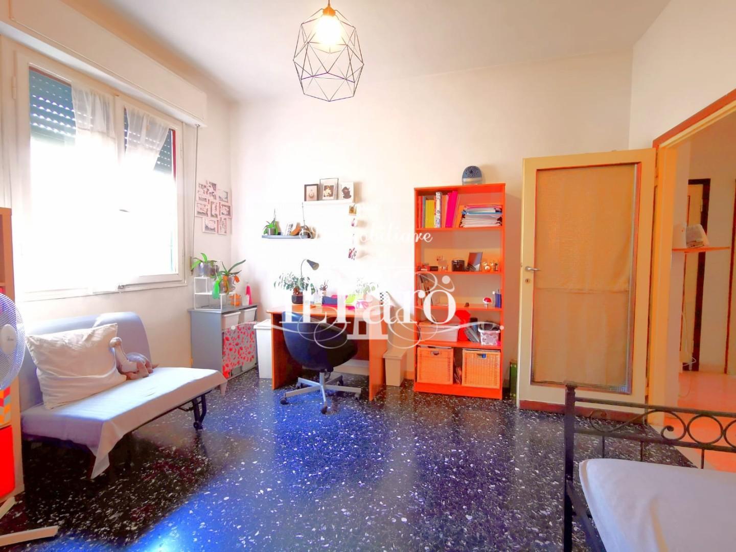 L'immobile è molto luminoso con esposizione ottima (sud-ovest-nord). Ingresso in disimpegno tradizionale, ampio soggiorno attualmente adibito a camera, cucina ampia, bagno finestrato, due camere matrimoniali e ripostiglio.