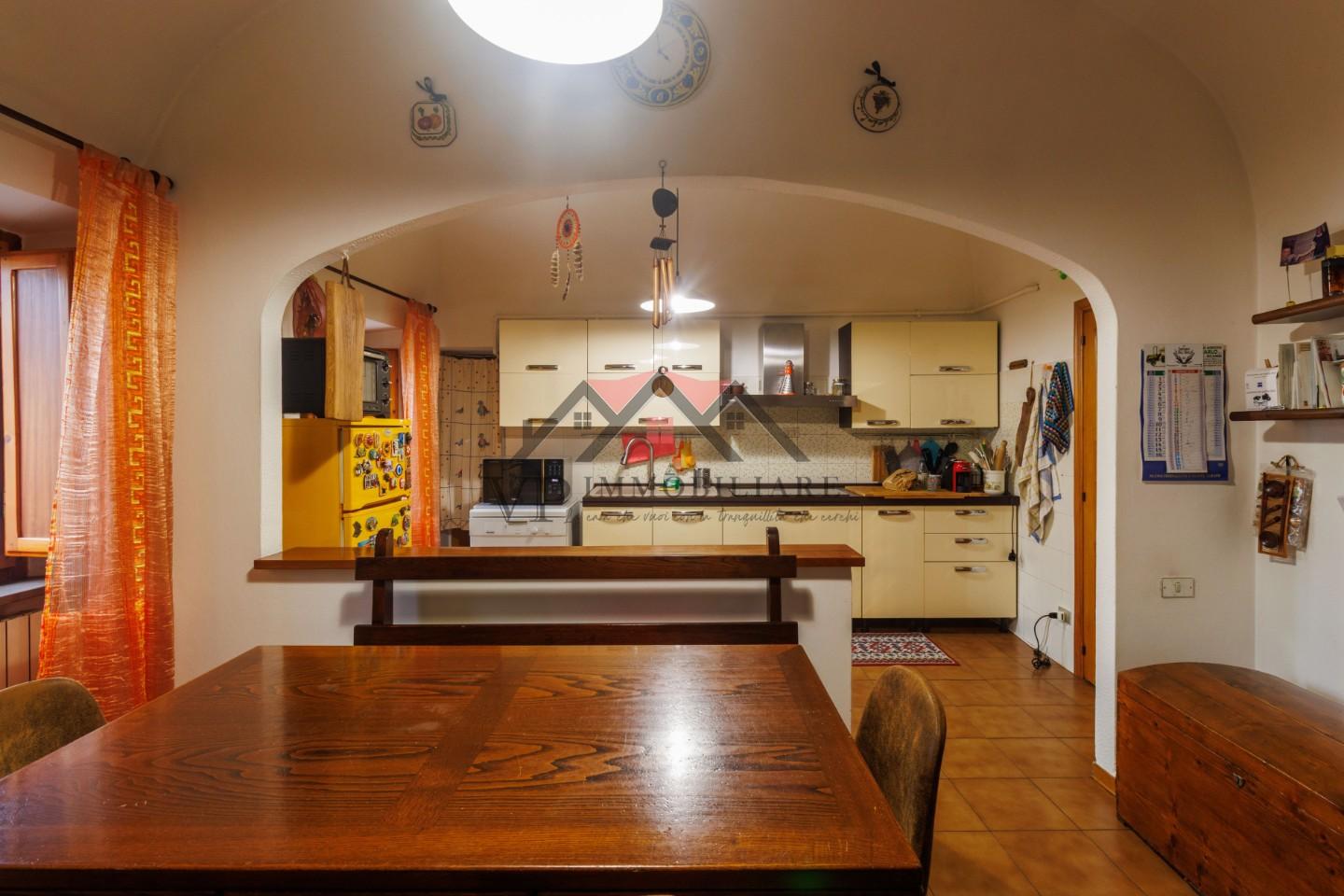 Appena varcata la porta, sarete accolti da un elegante soggiorno, alla destra vedrete unampia cucina con zona pranzo abbellito da un caminetto rustico.