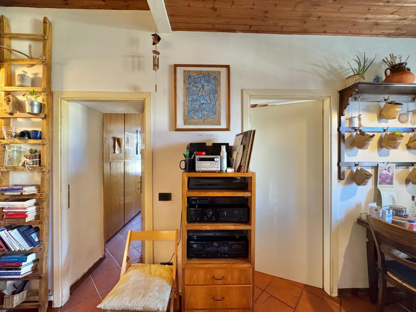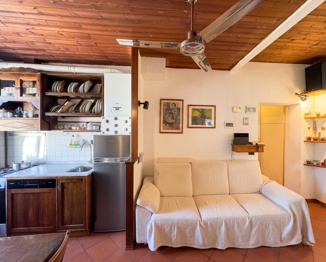 Gli Spazi: Labitazione si apre su una zona giorno accogliente con angolo cottura, perfetta per chi ama un ambiente conviviale e dal sapore rustico.
