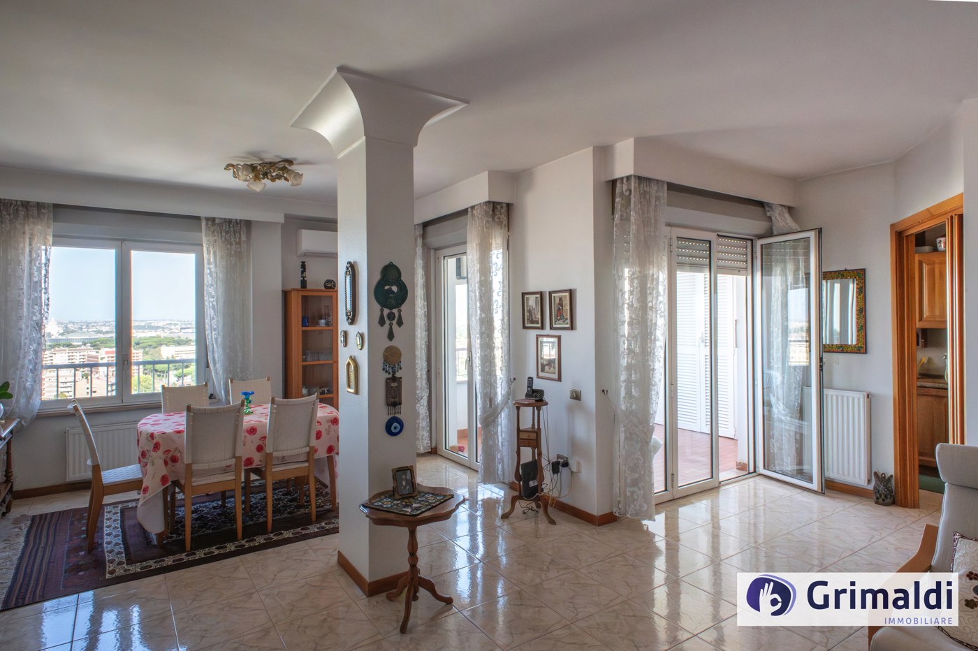 Rif. V54/25 - EUR nuova Fonte Ostiense, in via Giuseppe Prezzolini, in palazzo in cortina realizzato nella seconda met degli anni novanta (unico interamente in cortina della zona), dotato di doppio ascensore, proponiamo la vendita della piena propriet di un luminoso e panoramicissimo appartamento quadrilocale con terrazzo loggiato posto all'ultimo piano con doppia esposizione angolare.