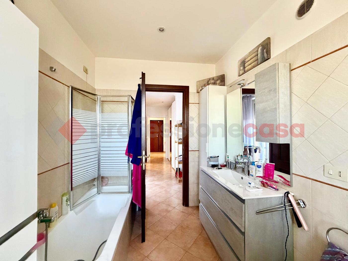 La propriet dispone inoltre di due bagni completi: il principale, finestrato e dotato di vasca, e un secondo bagno di servizio con box doccia.