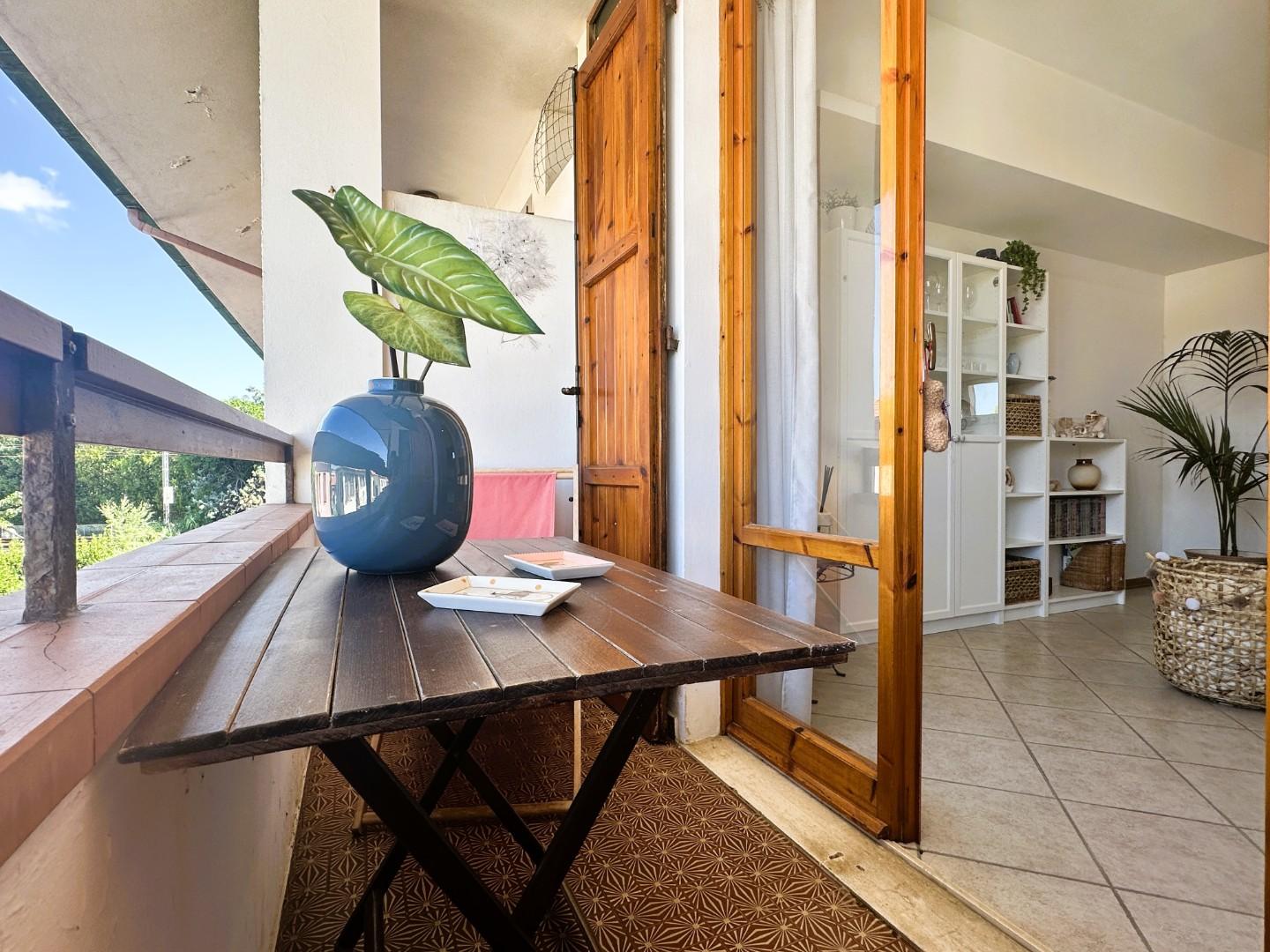 L'abitazione si trova nel fabbricato più interno e quindi in posizione più riservata e tranquilla all'ultimo piano (una rampa esterna ed una sola interna). Disposto su due livelli si compone di piccolo ingresso, primo bagno con doccia, cucinotto che affaccia sulla sala da pranzo e ampio e luminoso salotto che all'occorrenza può diventare una camera avendo una porta scorrevole che divide i due ambienti; il balcone presente comunica entrambe le stanza del piano.