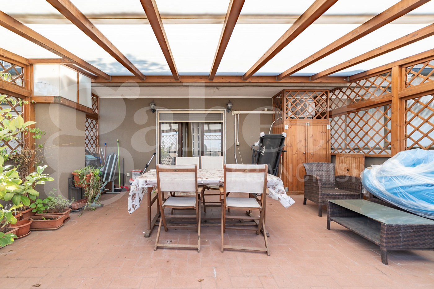 L'immobile cos composto: ingresso che introduce in un soggiorno ampio e luminoso, arricchito da un grande terrazzo perfetto per momenti di relax all'aria aperta.