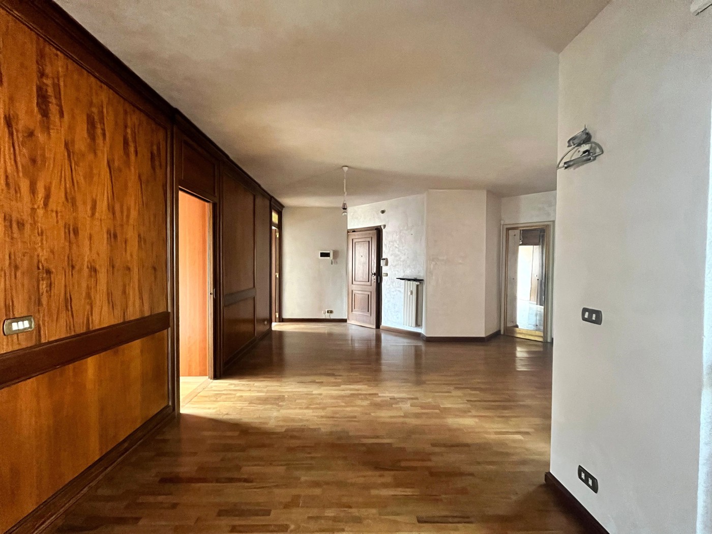 Lingresso si apre su un' ampia e luminosa zona giorno, affiancata da una spaziosa cucina.