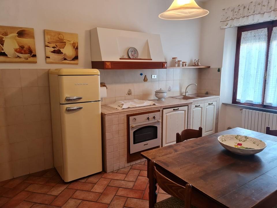 Proseguendo troviamo poi il bagno finestrato la camera doppia e lampissima camera matrimoniale . Riscaldamento autonomo gpl, nella cucina è possibile installare una stufa a pellet essendo presente la canna fumaria.