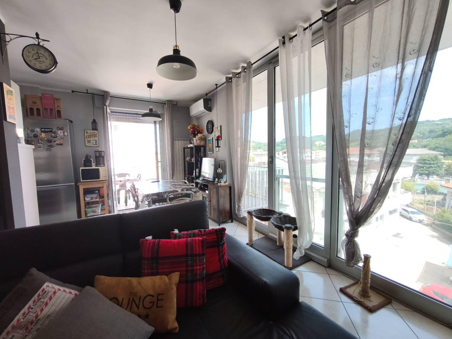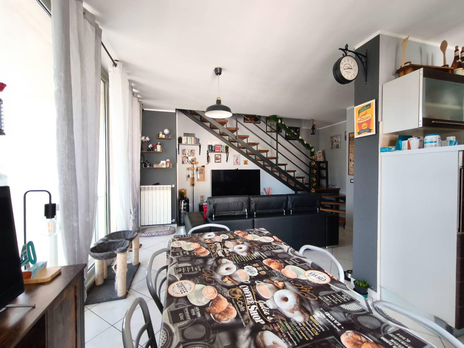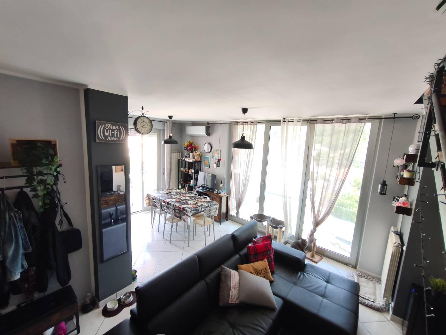 Rif-135t A Sambuceto e precisamente in via Padova, l'agenzia Silvire vende un appartamento disposto su due livelli in una piccola palazzina di recente costruzione ( 2010) con ascensore cos composto: primo livello con soggiorno con angolo cottura e accesso ad un balcone verandato ed una terrazza; attraverso una scala interna si accede al secondo livello occupato da una camera matrimoniale con annessa una cabina armadio; due camerette, un bagno con vasca e acceso ad una terrazza.