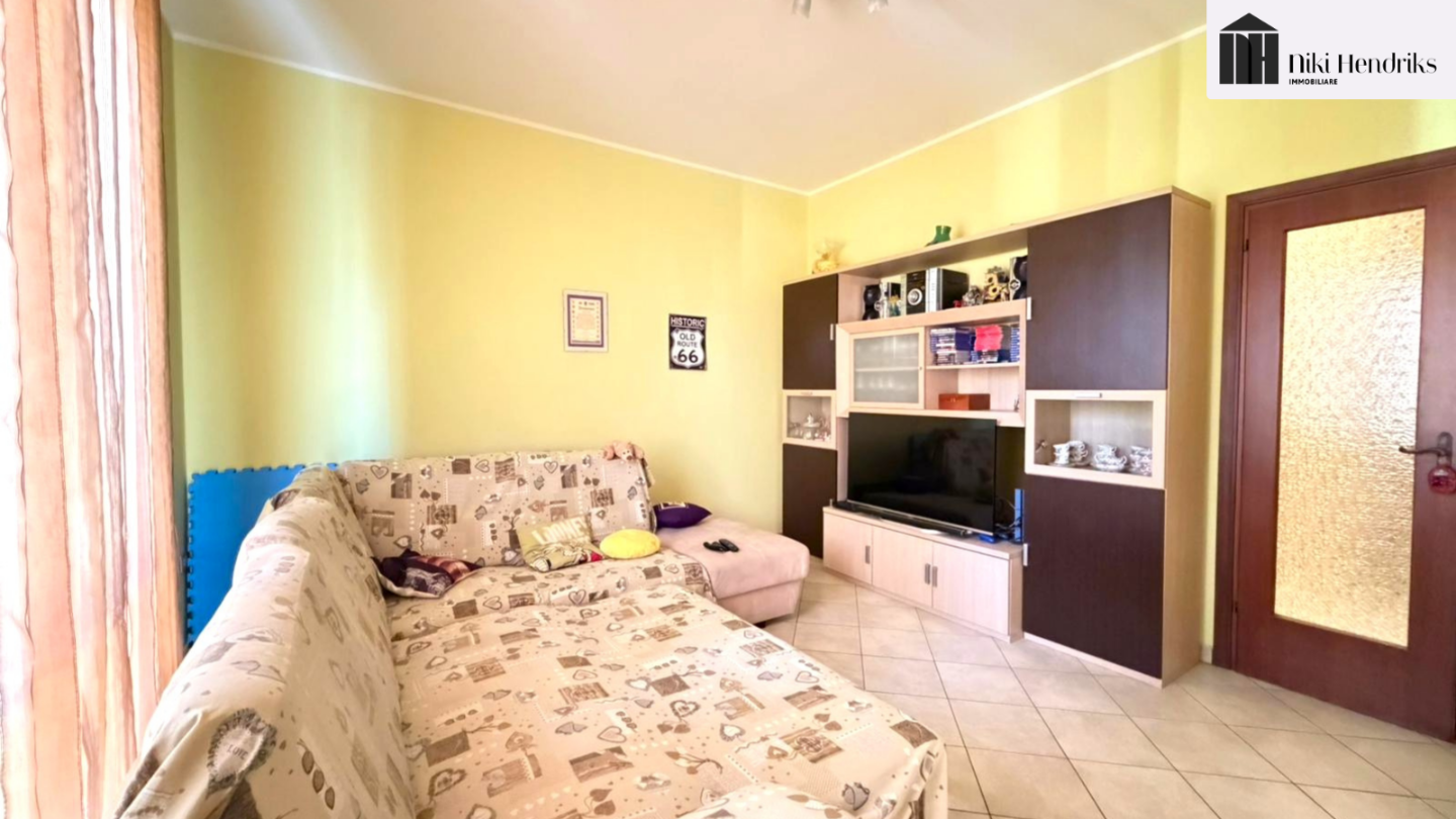 La zona giorno è composta da un luminoso soggiorno, che grazie a due porte-finestre, offre laccesso al balcone principale.