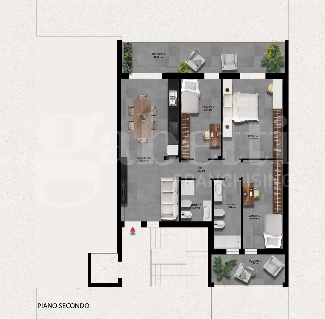 Tutti gli appartamenti saranno Quadrivani, con due bagni, spazi interni ben distribuiti e ampie terrazze e balconi, ideali per vivere gli spazi esterni in ogni stagione.