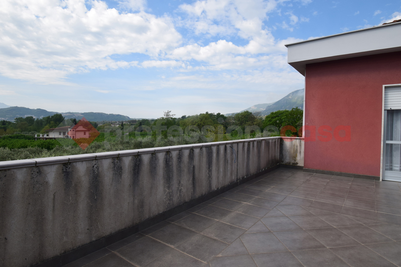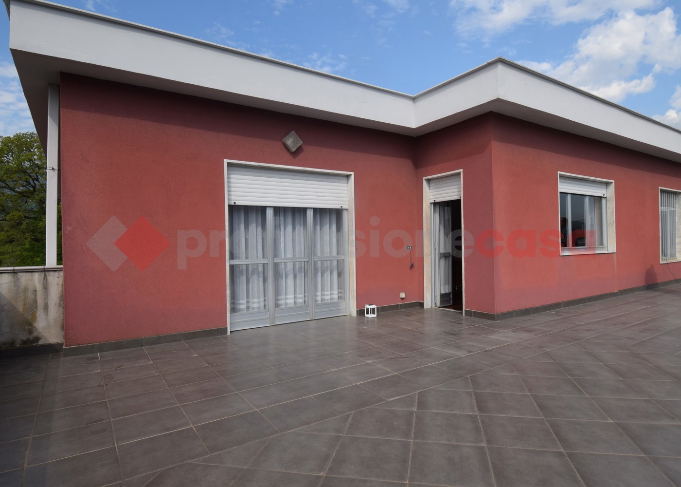 Limmobile composto da ingresso con disimpegno, una cucina ampia dotata di camino e balcone, un salone doppio luminoso con un terrazzo esclusivo di 85 mq, perfetto per momenti di relax o pranzi allaperto.