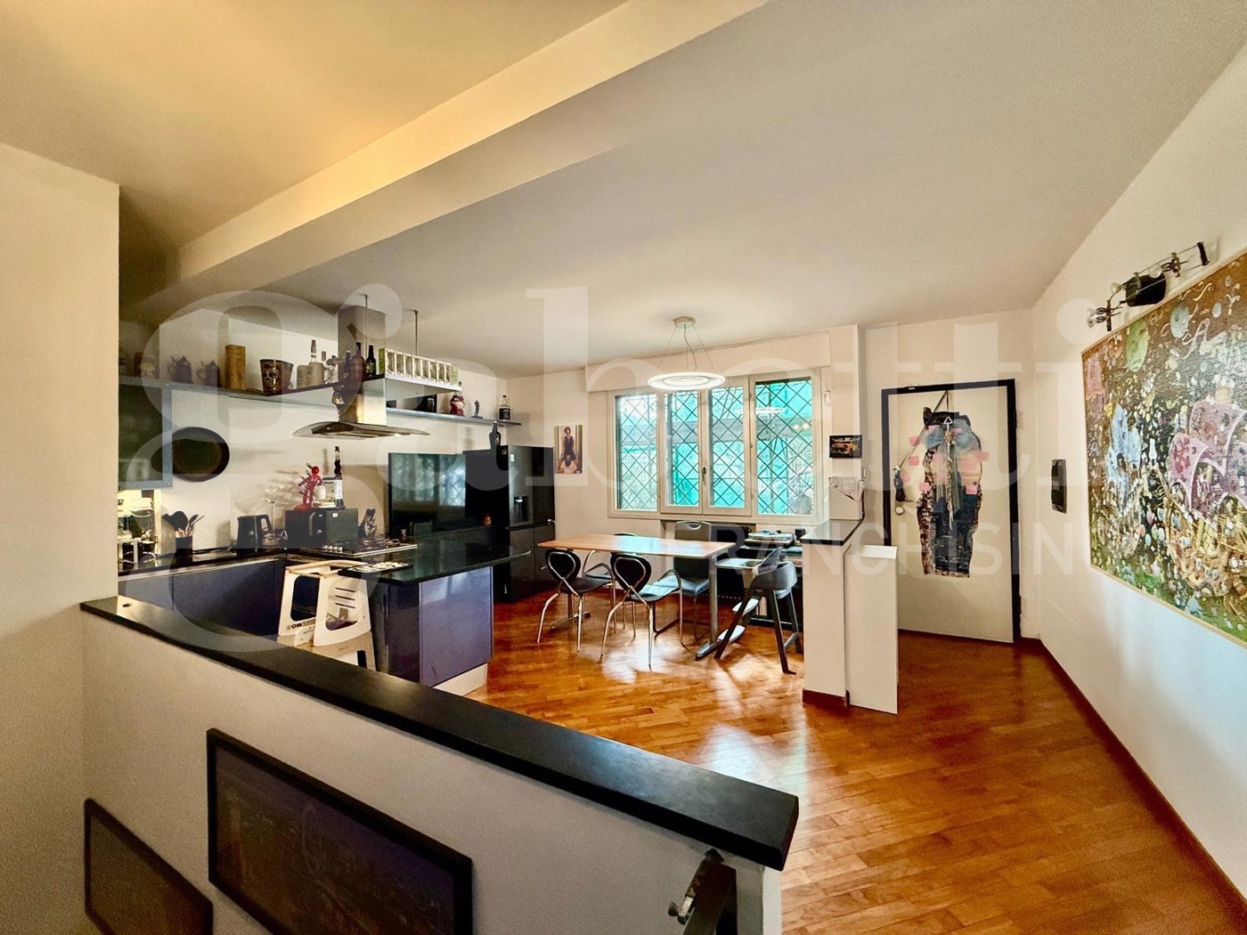 Appartamento cos composto; da ingresso che affaccia nella zona giorno cucina, corridoio che ci fa accedere alla zona notte con due camere da letto una matrimoniale e l'altra singola e un bagno finestrato al piano.