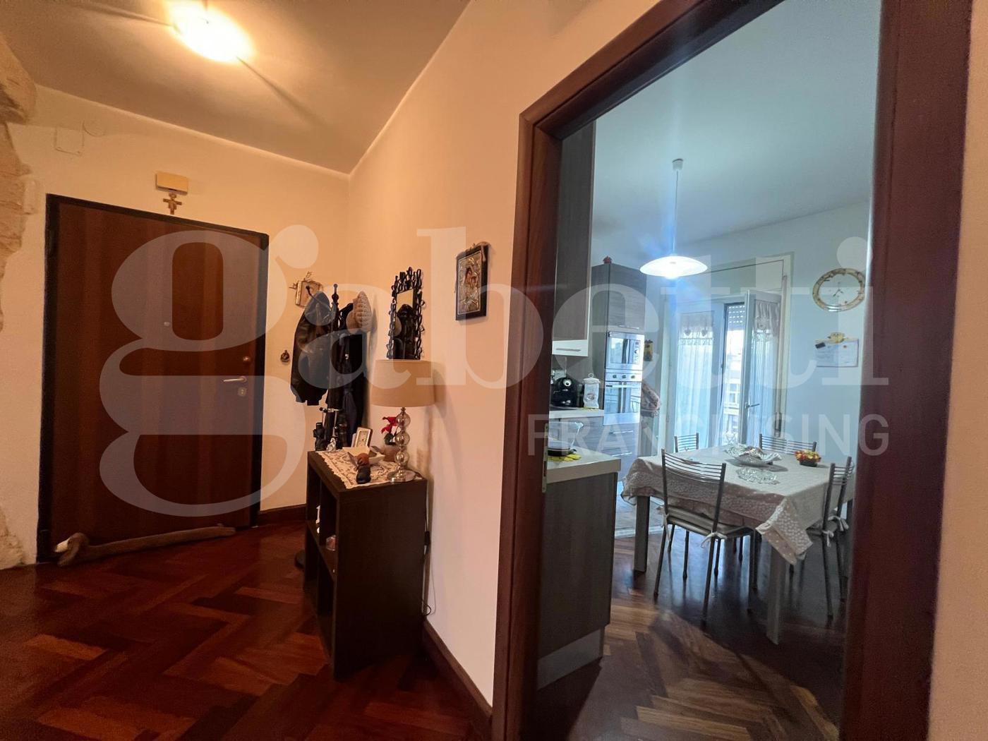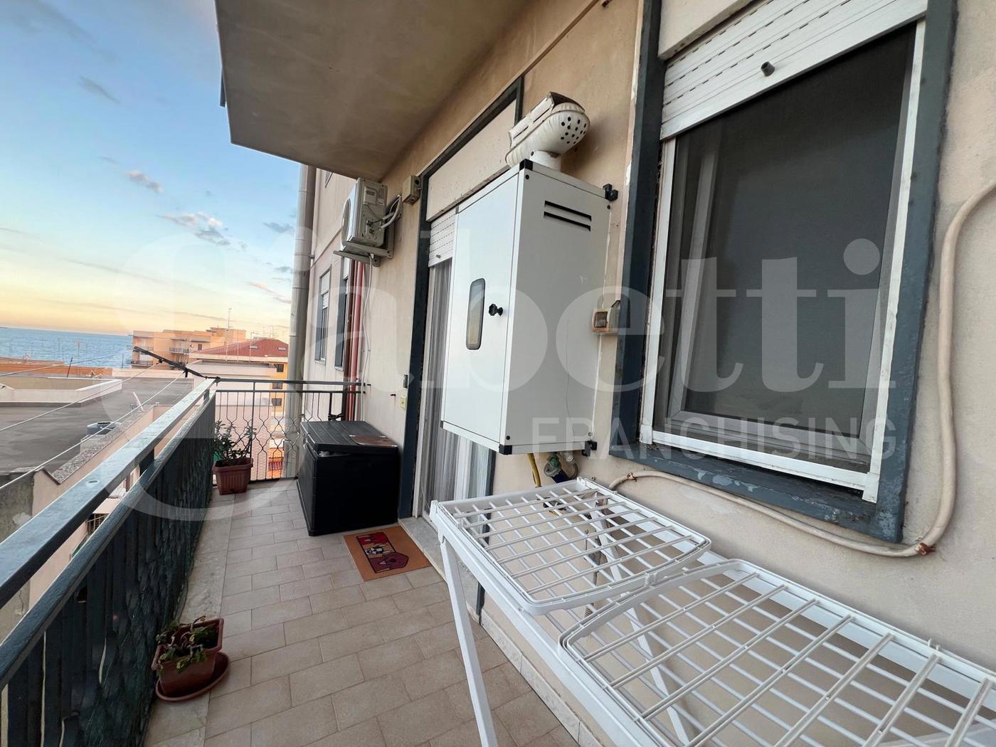 La casa misura 106 mqc con due balconi di complessivi 9 mq. Internamente, la casa ha ingresso su un grande e signorile salone aperto e con balcone esclusivo, cucina abitabile con balcone esclusivo e doppio servizio (con wc, pilozza e angolo lavatrice), disimpegno, bagno con doccia e finestra, camera da letto matrimoniale con finestra, camera da letto con finestra, comodo ripostiglio.