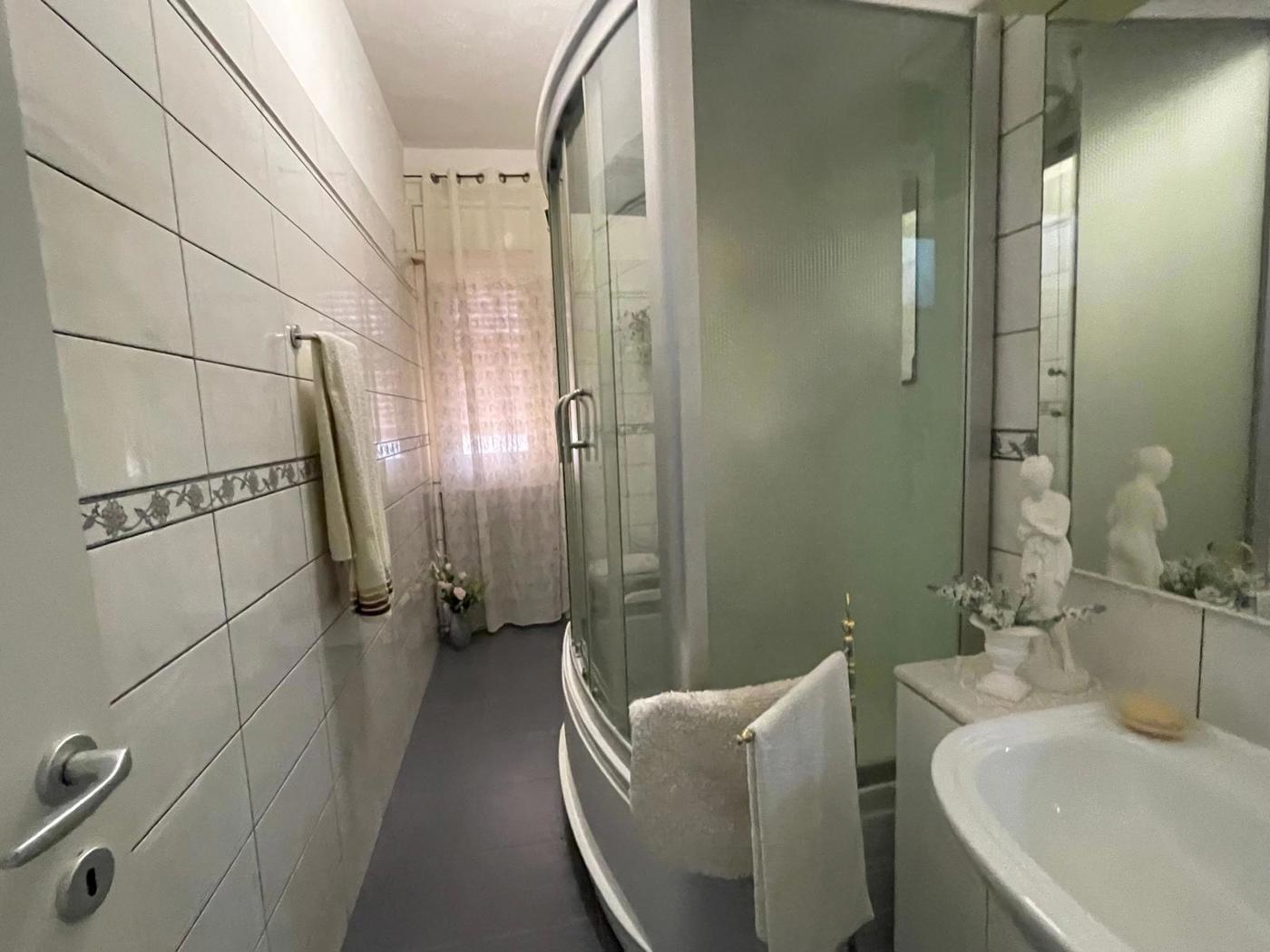 Dotato di ascensore, condizionatori e infissi in vetrocamera, l'appartamento garantisce comfort e sicurezza.