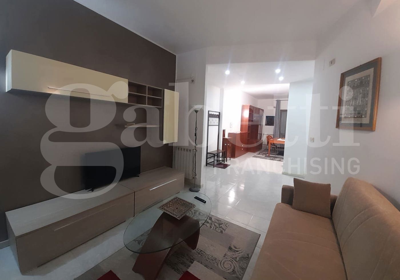 La casa ha una grande area living (divisa in salotto con accesso al primo grande balcone e sala da pranzo con accesso al secondo grande balcone) con annessa cucina (con finestra), disimpegno, comodo bagno con vasca e doccia (oltre ad accesso alla veranda), secondo bagno con pilozza e wc e lavatrice, camera matrimoniale con accesso al primo grande balcone, camera da letto con accesso al secondo grande balcone.