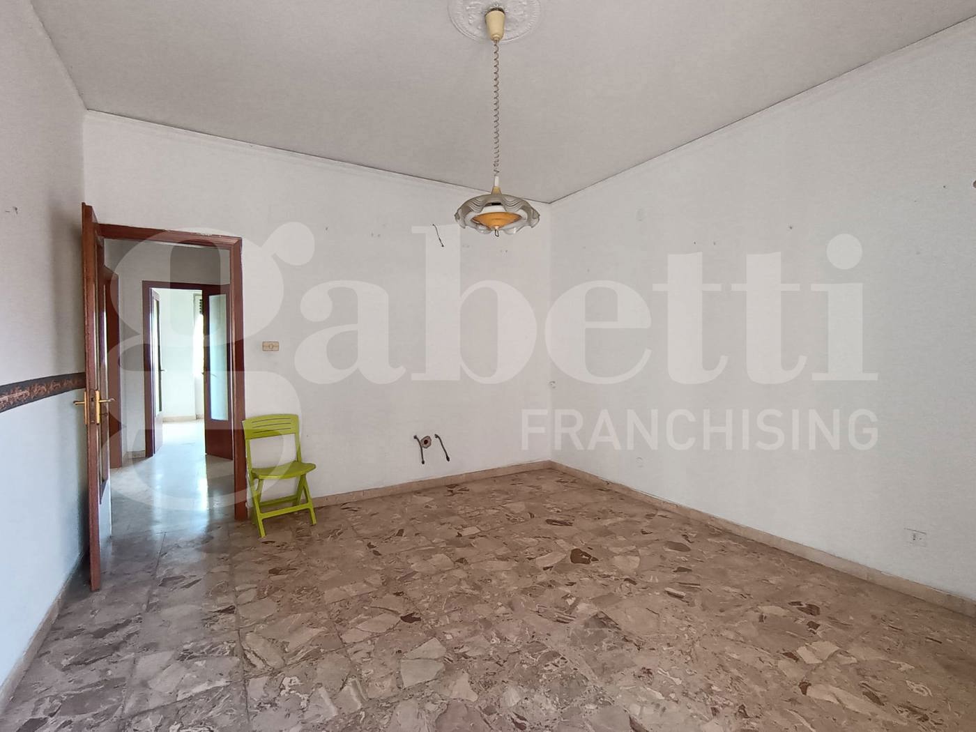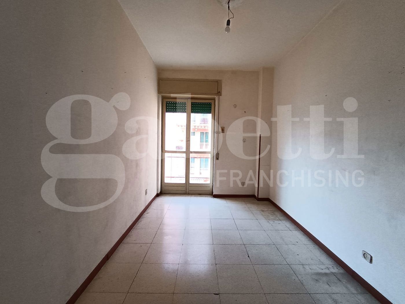 Lappartamento, in discrete condizioni e non abitato, composto da ingresso con finestrella, lungo corridoio, salotto con accesso al balcone principale, camera singola con accesso al balcone principale, cucina abitabile con accesso al balcone comune, disimpegno, bagno principale con vasca e finestra, doppio servizio con finestra e pilozza (ed eventualmente spazio lavanderia), camera da letto con grande finestre, camera da letto matrimoniale con balcone esclusivo.