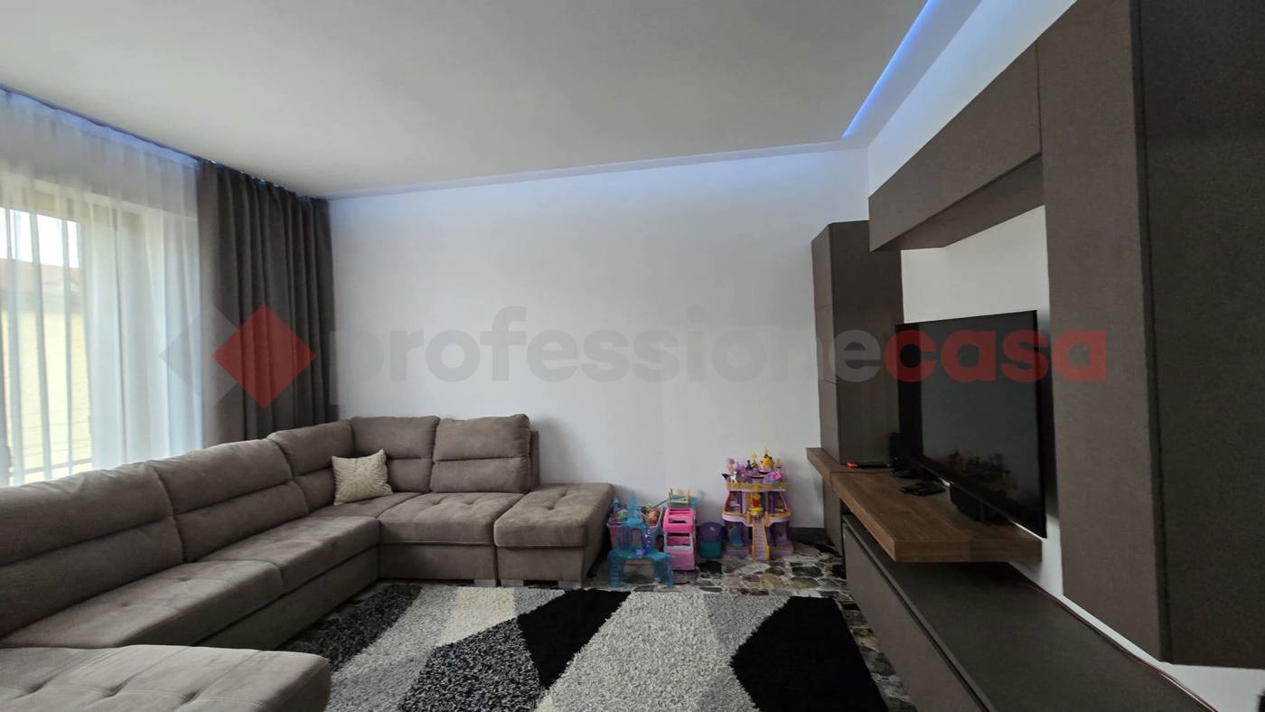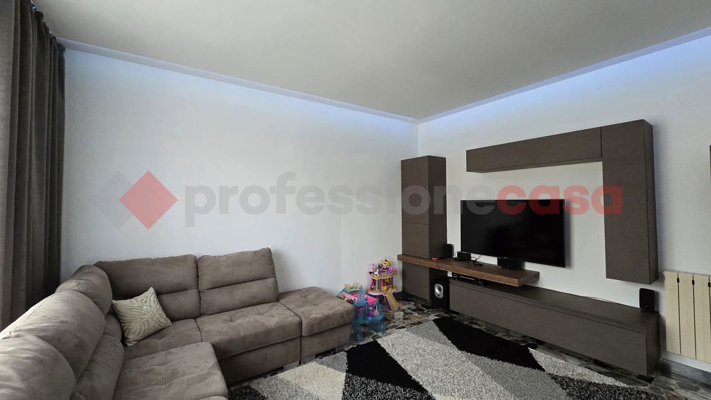 Limmobile, di circa 100 mq, si presenta in ottime condizioni ed composto da ingresso, una cucina abitabile moderna con pratico ripostiglio adibito a zona lavanderia e caldaia, e un soggiorno doppio con luci led e molto luminoso, entrambi con accesso a un lungo balcone che collega la zona giorno.