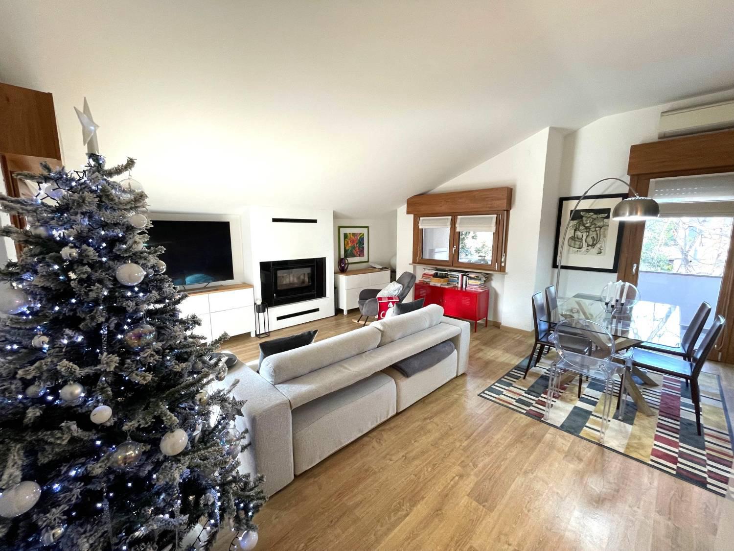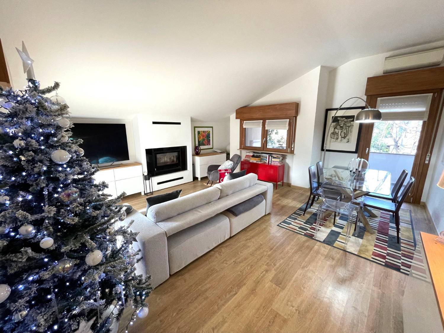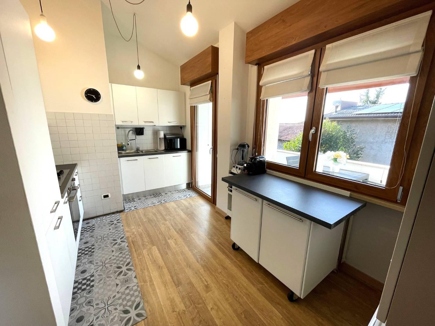 RISTRUTTURATISSIMO TRICAMERE BISERVIZI ALL'ULTIMO PIANO Nella piazza centrale del paese, in signorile condominio oggetto di riqualificazione con Superbonus, caratterizzato da un piacevole giardino condominiale, proponiamo in vendita tricamere ristrutturato sito al secondo ed ultimo piano (no ascensore). Immobile composto da: Ingresso, terrazza, bagno finestrato con doccia, cucina semi-separata con piacevole terrazza abitabile dotata di tenda da sole, spazioso soggiorno con caminetto ed accesso alla terza terrazza, disimpegno notte, tre camere da letto e secondo bagno con doccia.