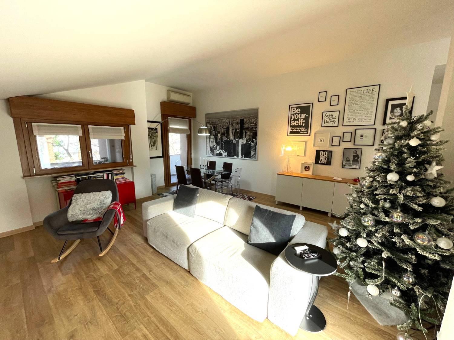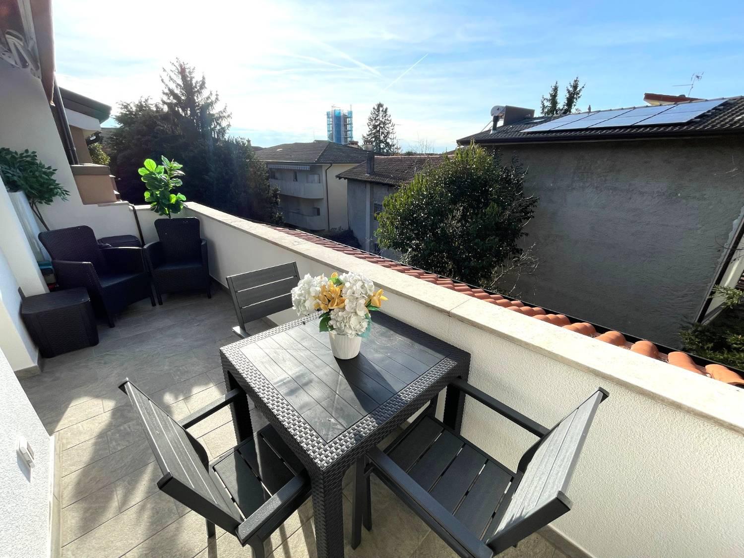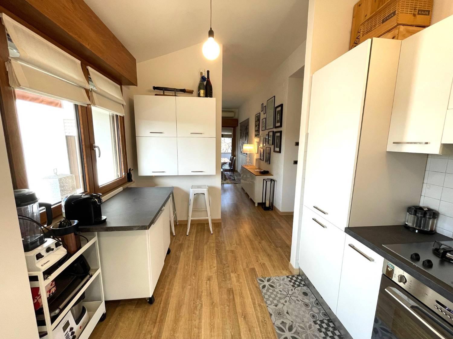 RISTRUTTURATISSIMO TRICAMERE BISERVIZI ALL'ULTIMO PIANO Nella piazza centrale del paese, in signorile condominio oggetto di riqualificazione con Superbonus, caratterizzato da un piacevole giardino condominiale, proponiamo in vendita tricamere ristrutturato sito al secondo ed ultimo piano (no ascensore). Immobile composto da: Ingresso, terrazza, bagno finestrato con doccia, cucina semi-separata con piacevole terrazza abitabile dotata di tenda da sole, spazioso soggiorno con caminetto ed accesso alla terza terrazza, disimpegno notte, tre camere da letto e secondo bagno con doccia.