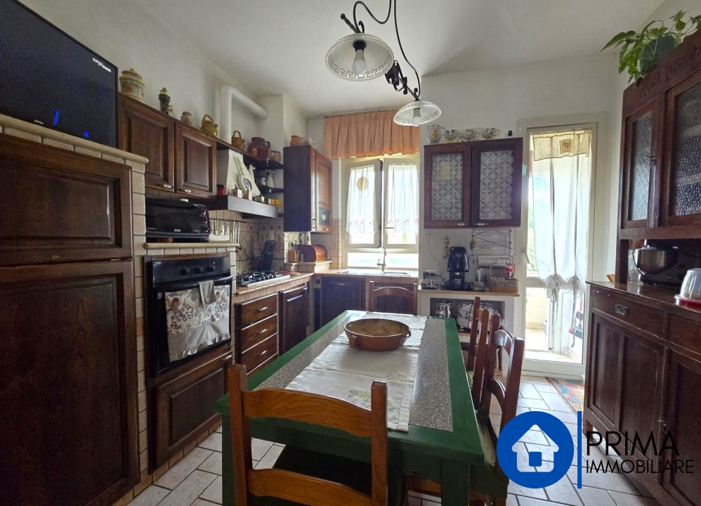 \nDal portoncino blindato entriamo nella zona giorno composta da salone con accesso al balcone e da cucina abitabile in muratura con dettagli in legno, anch'essa con accesso al secondo balcone.\nLa zona notte è divisa da un disimpegno a cui si accede da una bella porta in legno e cristallo, qui troviamo il ripostiglio, tre camere da letto di cui una matrimoniale e due singole tutte con il parquet e infine, il bagno in muratura dai colori tenui con nicchia appositamente studiata per la lavatrice.