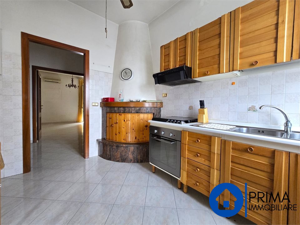 In piccola palazzina termo autonoma, dalle basse spese di gestione e dotata di posti auto condominiali con accesso da barra elettrica, vi proponiamo appartamento in ottime condizioni e pronto essere abitato.\nL'appartamento, sito al primo piano, è composto da ampio ingresso e zona giorno con cucina abitabile con camino e porta finestra sul balcone con vano lavanderia e salone separato molto luminoso con split dell'aria condizionata.\nUn disimpegno conduce verso la zona notte, dove troviamo due camere da letto, di cui la padronale con accesso al secondo terrazzo, il bagno con doccia e finestra e un pratico ripostiglio.\nLa proprietà è completa di soffitta.