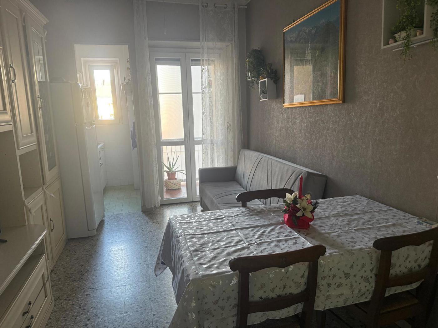Composizione interna: ingresso, disimpegno, tinello con cucinino, tre ampie camere da letto (di cui una attualmente adibita a soggiorno), bagno finestrato con vasca.
