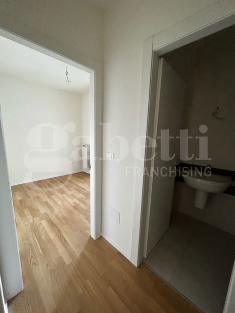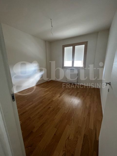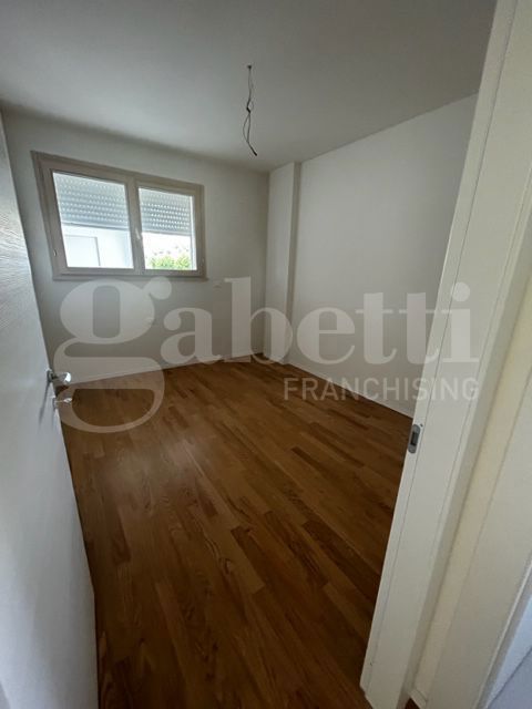 La zona notte caratterizzata da un caldo parquet, mentre le porte in laminato bianco e le tapparelle elettriche conferiscono un design contemporaneo.