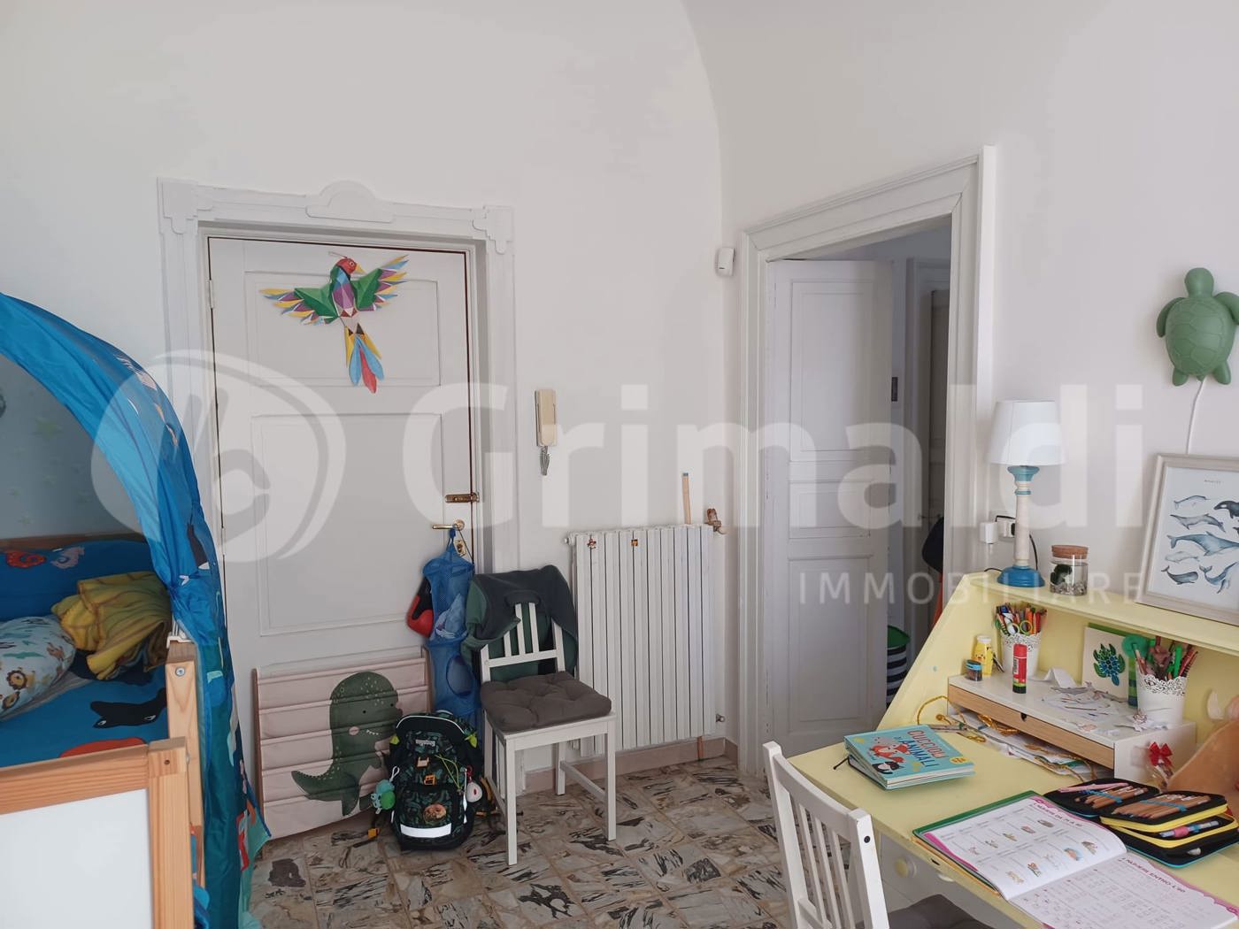 Proponiamo in vendita, nel centro di Trani, nei pressi dell'incrocio tra via Malcangi, Corso imbriani, Via Aldo Moro e Via Tasselgardo, all'interno di una palazzina semi-indipendente, dei primi del '900, un appartamento di 125 mq., al primo piano, senza ascensore, con il pregio di avere un ampia terrazza a livello di circa 110 mq.. L'appartamento dotato di due ingressi ed composto da due camere da letto, cucina abitabile, soggiorno, sala da pranzo, un bagno, un ripostiglio ed una lavanderia che si trova sulla terrazza e ulteriori due balconi con affaccio su via Vittorio Malcangi.
