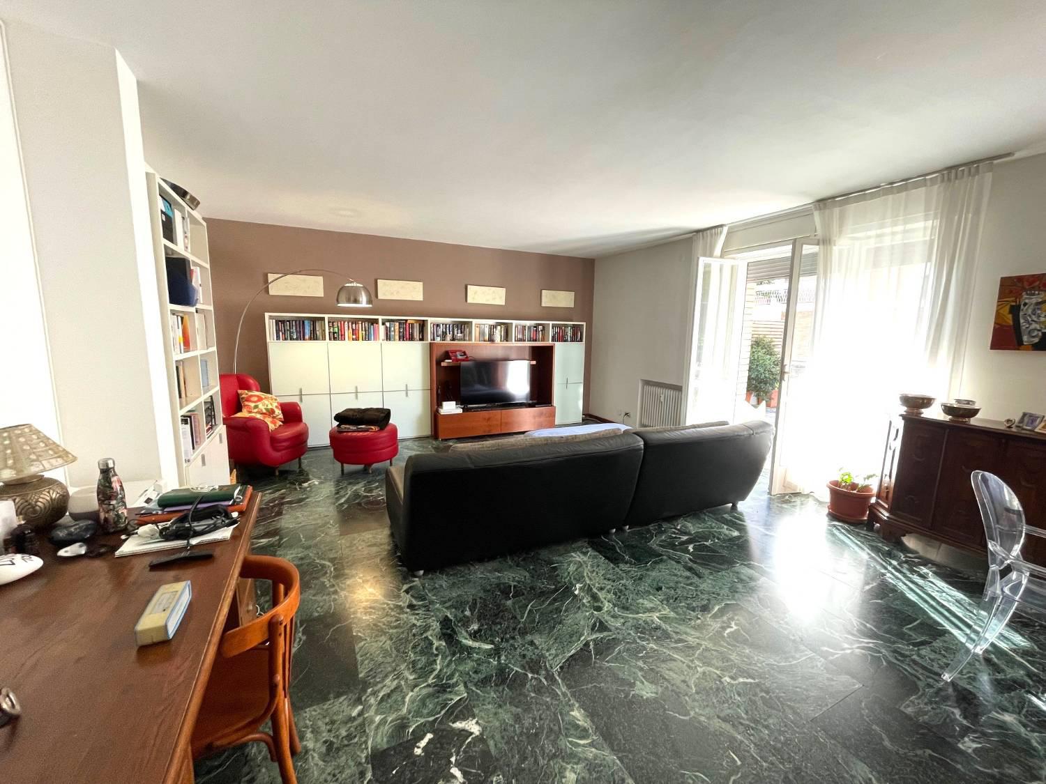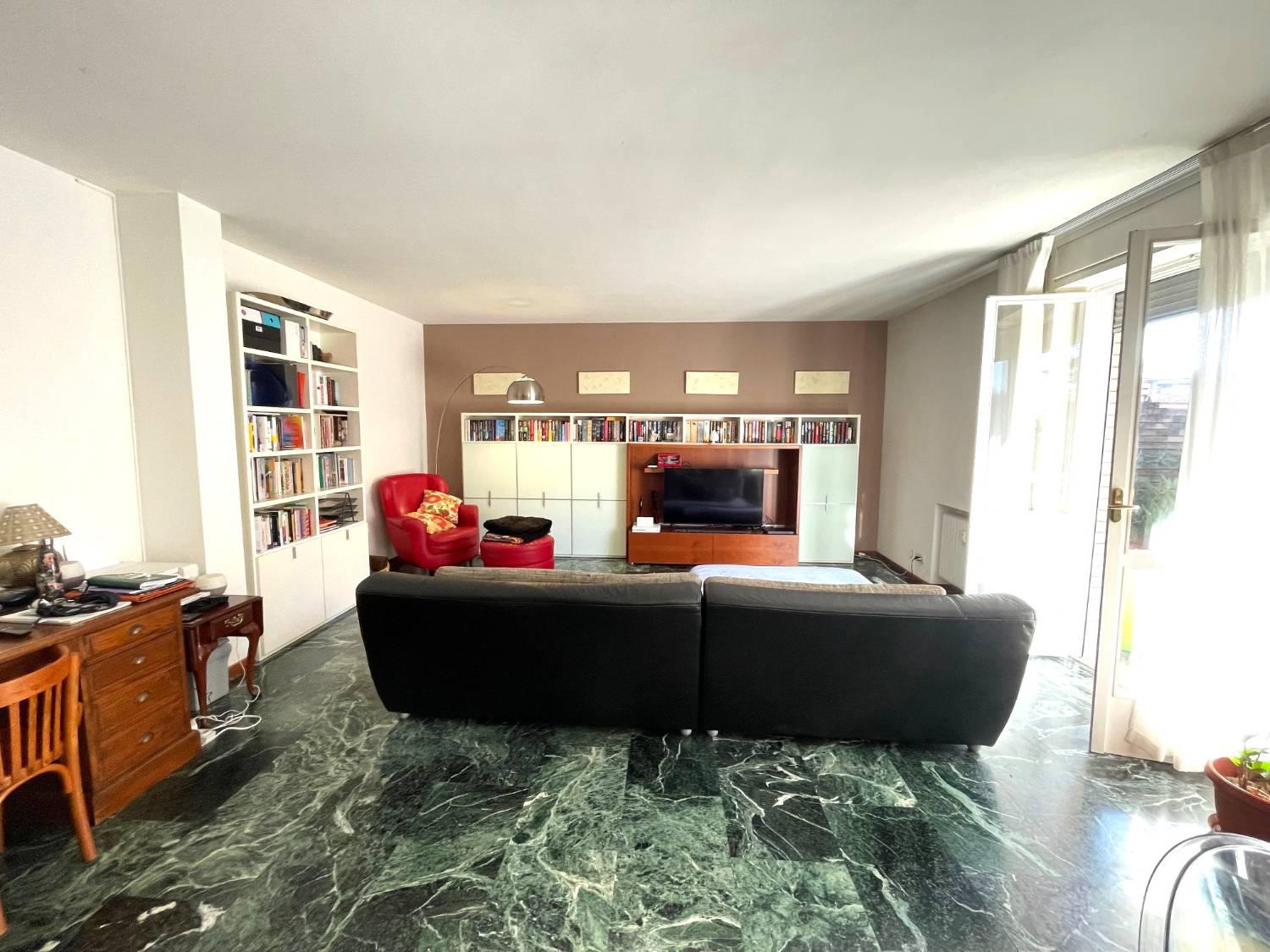 L'immobile composto da: ingresso, ampio soggiorno con zona pranzo ed accesso al terrazzone di ca. 90mq (una vera chicca), disimpegno, cucina con veranda, due comode camere, due bagni ed un ulteriore stanza.