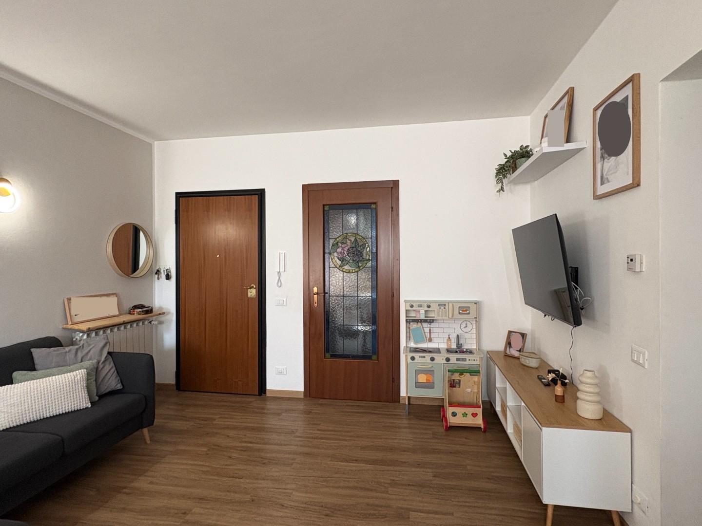 L'immobile si compone di: ingresso in zona giorno unica e luminosa dotata di finestra e portafinestra, balcone di servizio e ripostiglio, disimpegno, camera matrimoniale, camera singola e bagno con finestra.