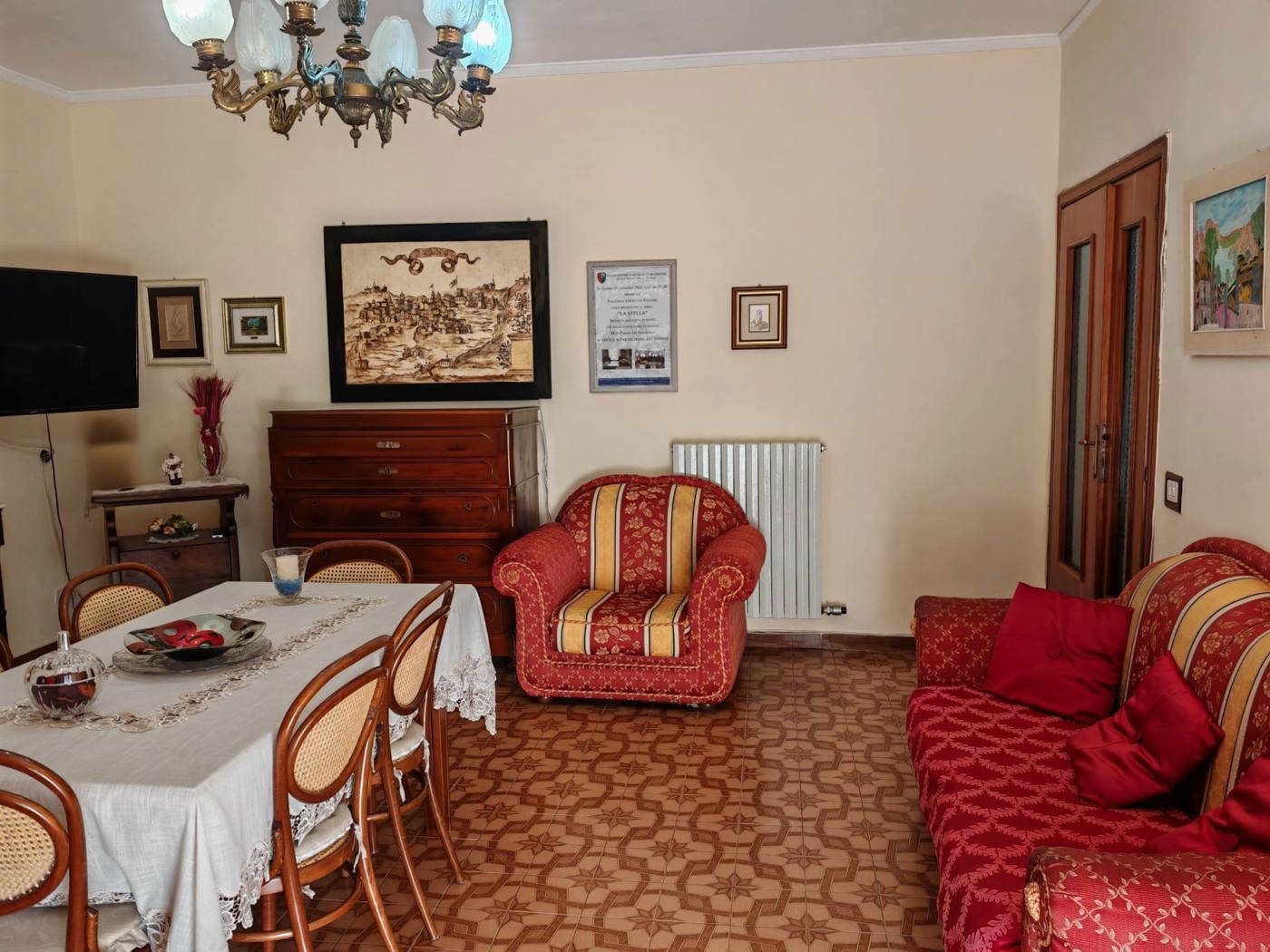 La distribuzione degli spazi interni funzionale e ben organizzata: lingresso conduce a un ampio e accogliente salone impreziosito da camino, ideale per momenti di relax e convivialit.