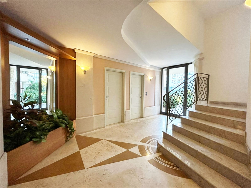 Attraverso una comoda scala interna con gradini in parquet, si può raggiungere il quarto piano, dove si trova la zona notte con due camere matrimoniali, di cui una con cabina armadio, uno studio con terrazzo e un bagno con doccia.