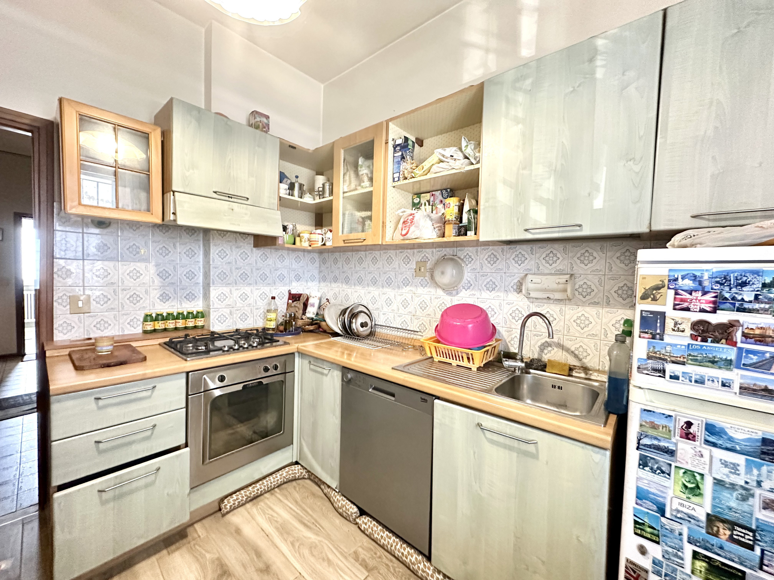 L'immobile si trova al secondo piano senza ascensore ed è così composto: Cucina abitabile con accesso al balcone Luminoso soggiorno 2 camere da letto di cui una servita da un secondo balcone Bagno finestrato restaurato 3 anni fa. Completa la proprietà: Garage Cantina e giardino in comune.
