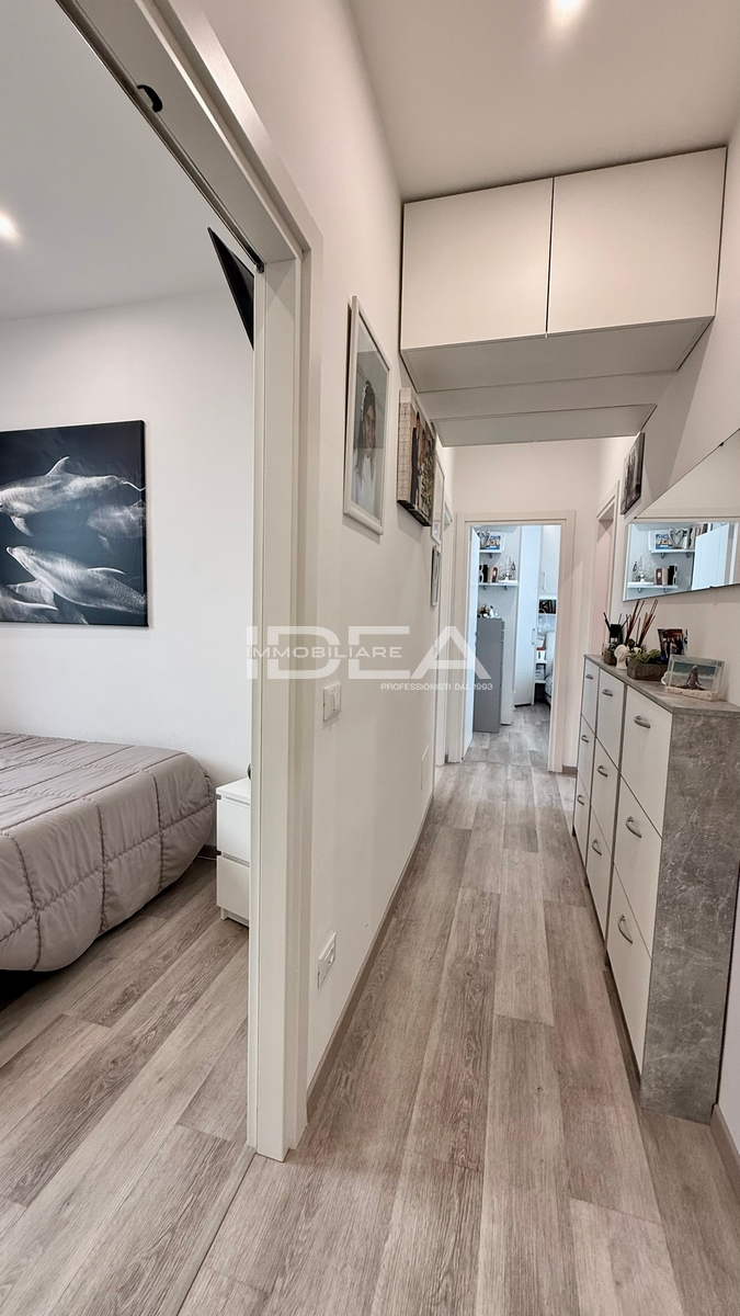 Si compone di ampio soggiorno-pranzo con angolo cottura con tre ampie finestre, disimpegno notte, grande bagno con comoda doccia finestrato, tre camere, bagno/lavanderia finestrato.