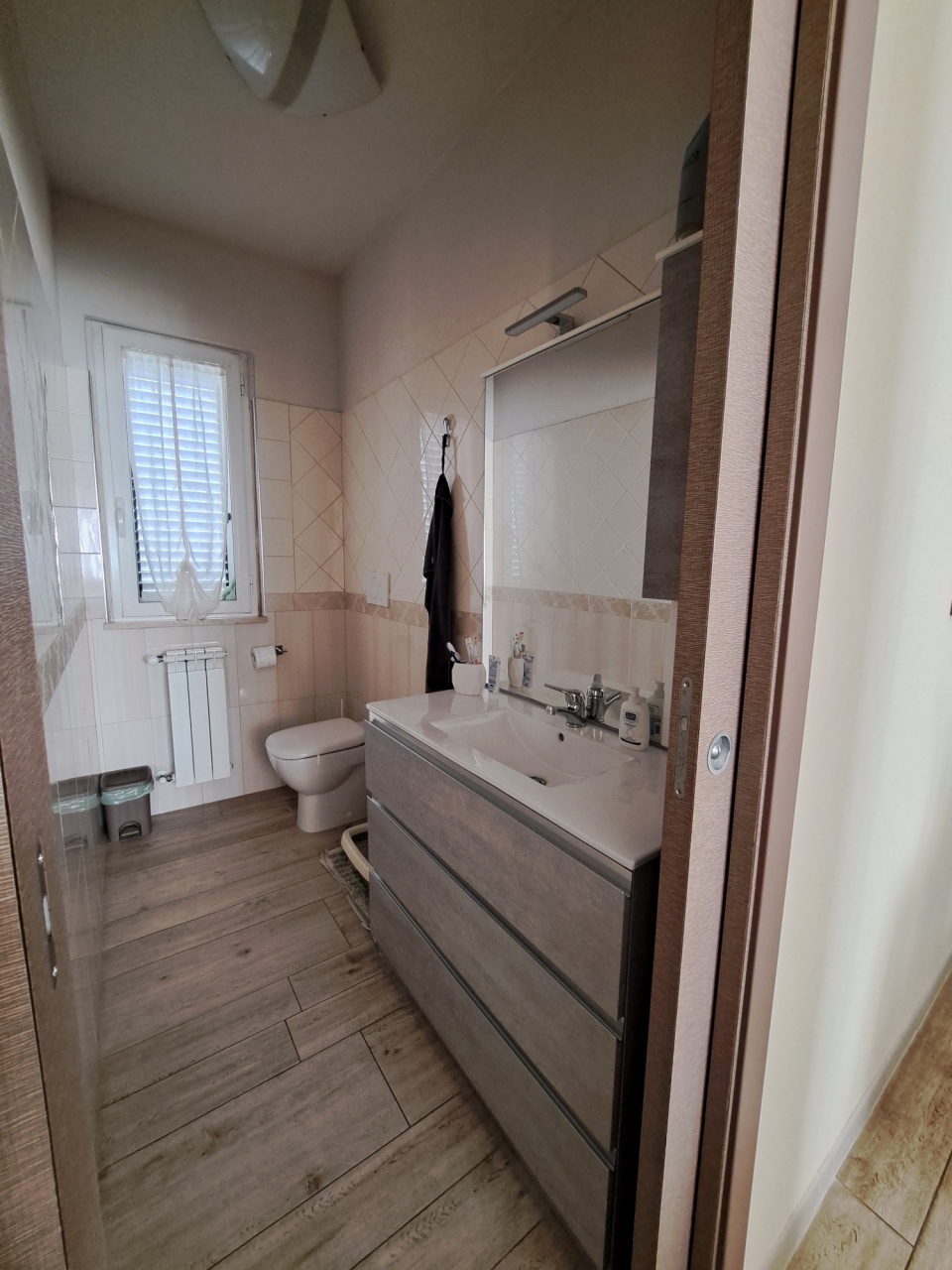 E' caratterizzato da INGRESSO INDIPENDENTE tramite RESEDE ESCLUSIVO che si sviluppa intorno all'immobile su tre lati. Internamente si compone di ingresso in ampio soggiorno, cucina abitabile, bagno di sevizio con antibagno, disimpegno notte, camera matrimoniale, camera singola e spazioso bagno, oltre piccolo locale tecnico posto all'ingresso dell'abitazione utilizzato anche come lavanderia.