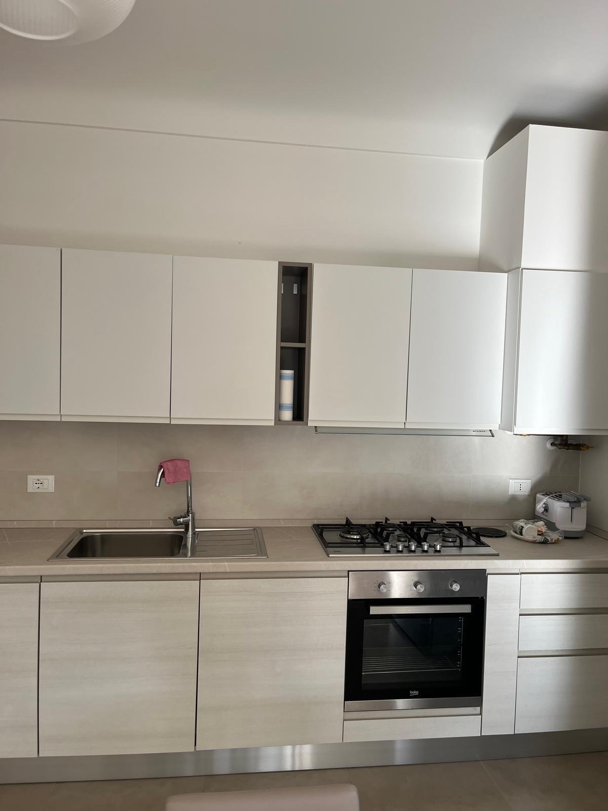 Labitazione si trova al primo piano e offre ambienti comodi e ben distribuiti; Lingresso conduce a un ampio salotto luminoso, arredato con poltrona, TV e zona relax, che si collega direttamente alla cucina: è presente un piccolo balcone dal quale si può ammirare il panorama con vista mare. Proseguendo lungo il corridoio si trova un bagno completo di doccia e lavatrice.