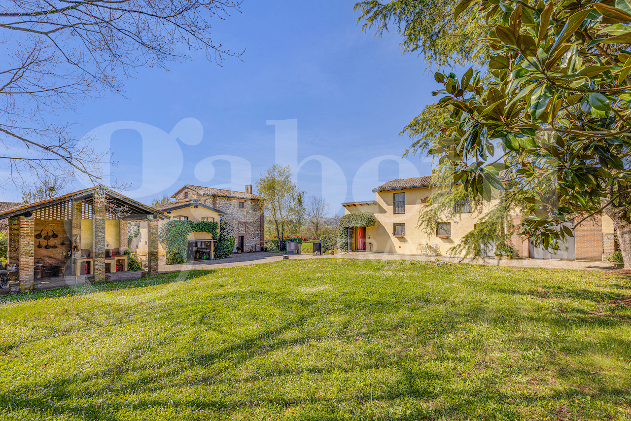La residenza si sviluppa attraverso due corpi principali immersi in un ampio giardino privato sapientemente curato.