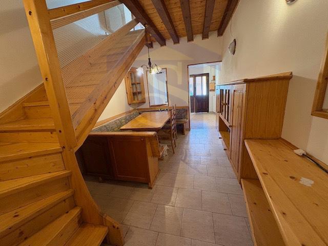 Caneva, localit Sarone, casa a schiera in centro paese, disposta du tre livelli e lotto di terreno privato fronte casa di 150 mq. ideale per posto auto e orto. Composta da salotto, sala da pranzo, cucina, bagno, due camere e cabina armadio.