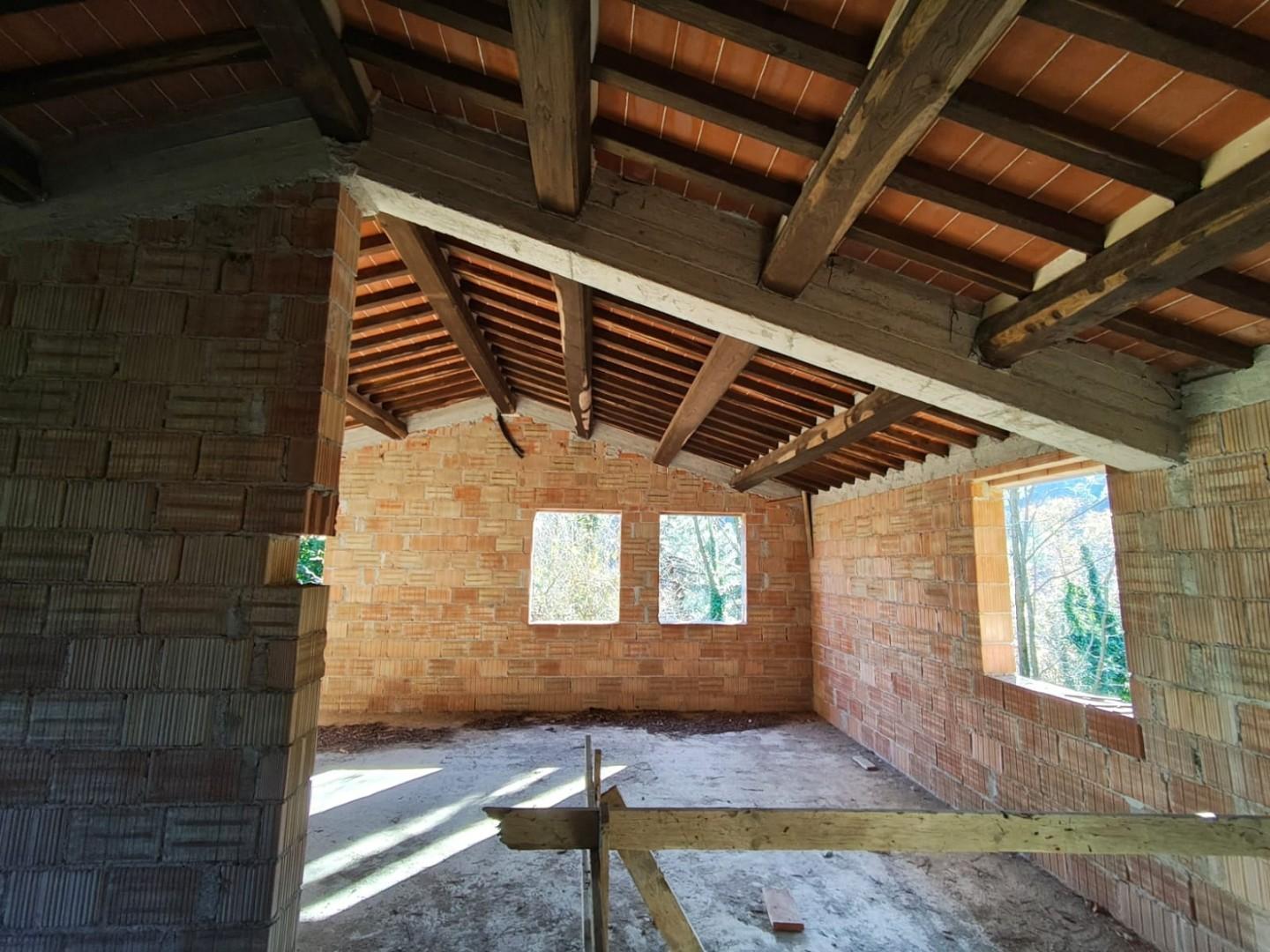 Limmobile viene venduto allo stato grezzo, con tetto e solai nuovi, mantenendo lo stile rustico con travicelli in legno, e necessita di rifiniture finali come impianti, intonaco, infissi e pavimenti, offrendo la possibilità di completarlo secondo i propri gusti.