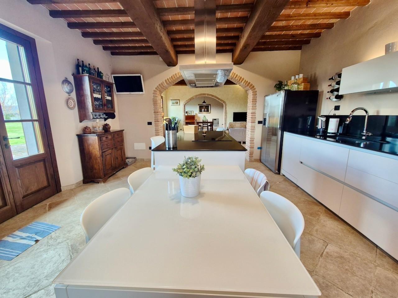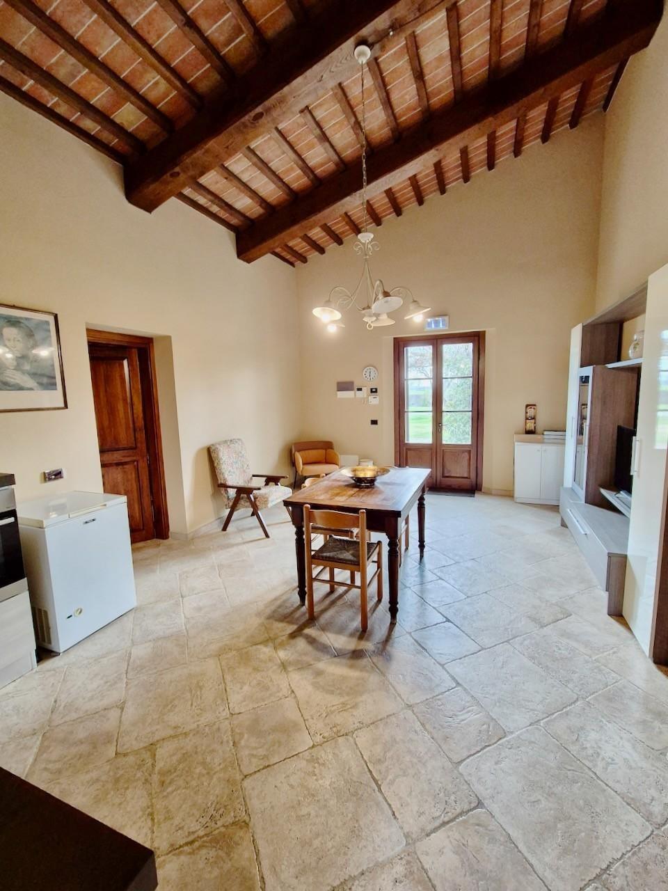Si compone al piano terra da ampio salone, sala da pranzo, salotto con camino, grande cucina abitabile, bagno e lavanderia, adiacente al piano terra depandance con cucina e camera da letto.