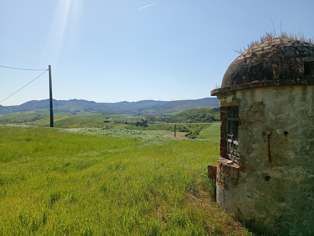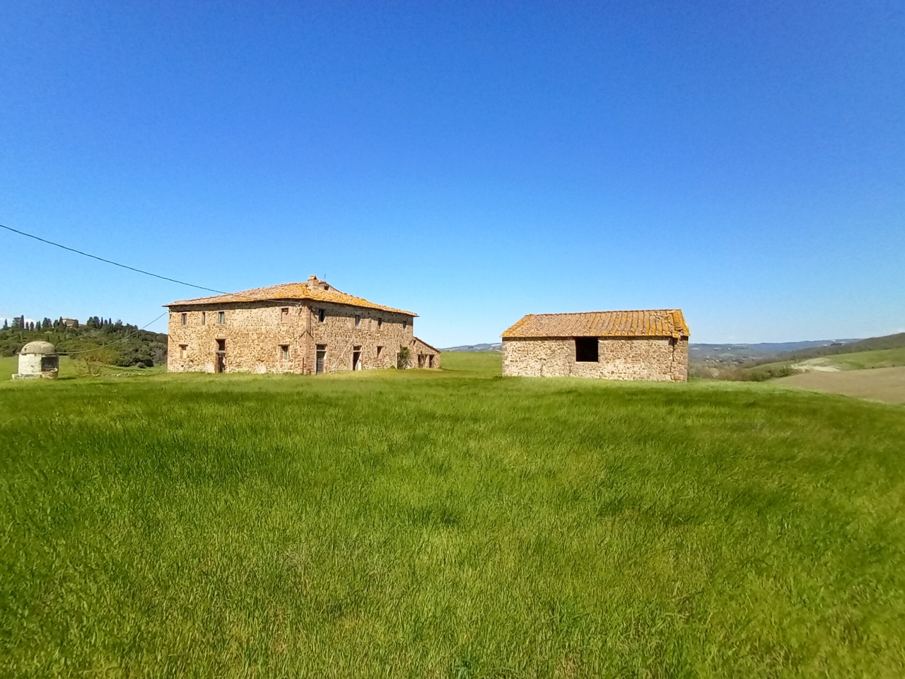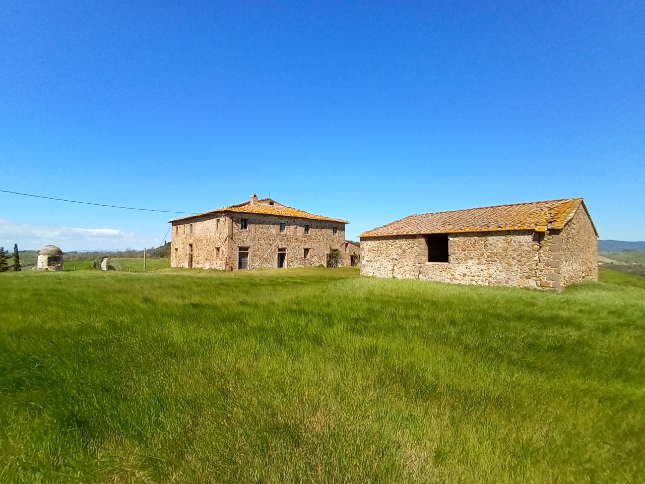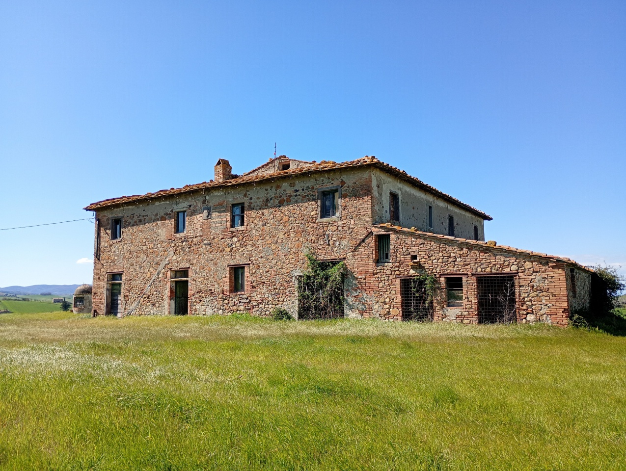 Complesso colonico tipico toscano con Casale in pietra e 2 Annessi, ubicato in posizione collinare dominante con bellissima vista panoramica su Volterra e Montecatini Val di Cecina.