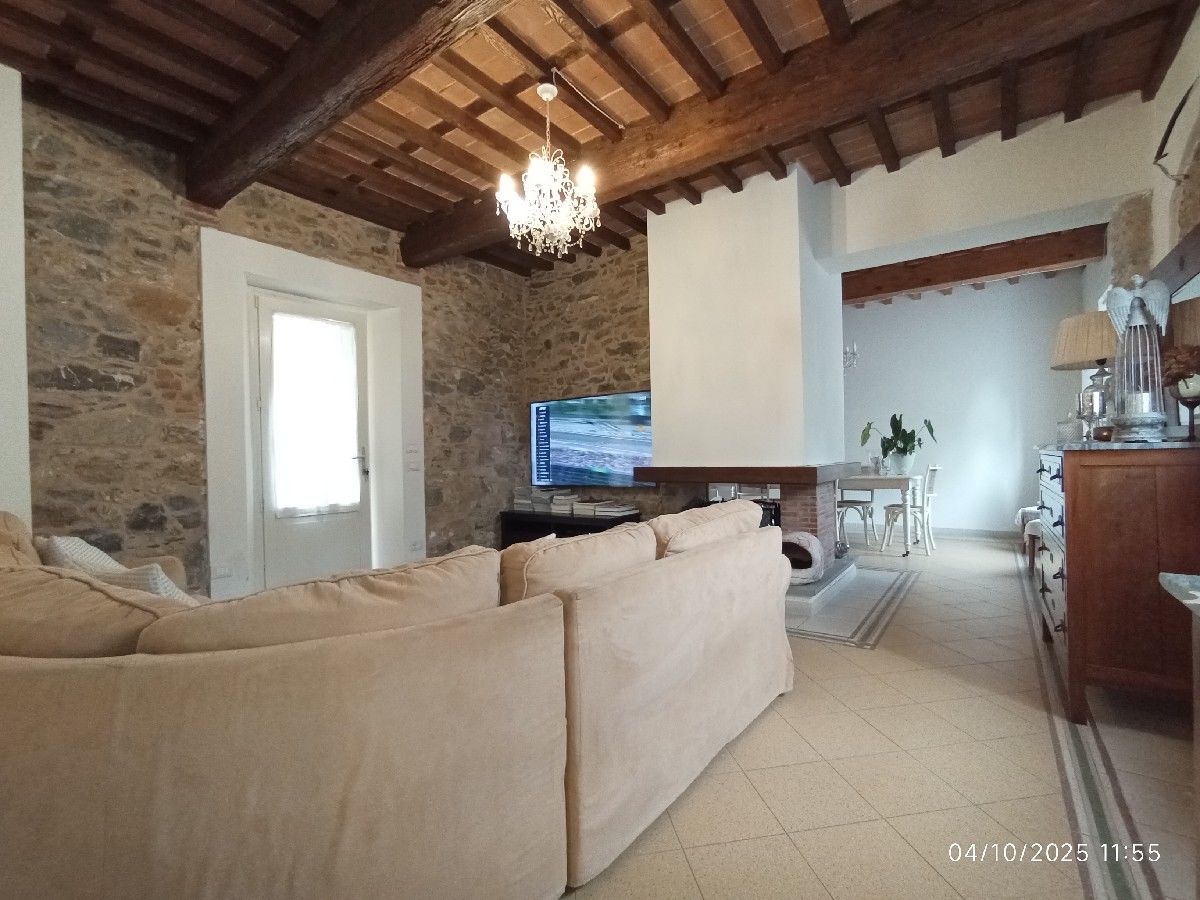 A poca distanza dal centro di Massarosa , bellissimo casale ristrutturato con grande cura . Il piano terra è composto da un salone doppio , con camino centrale , una grande cucina , un bagno di servizio.