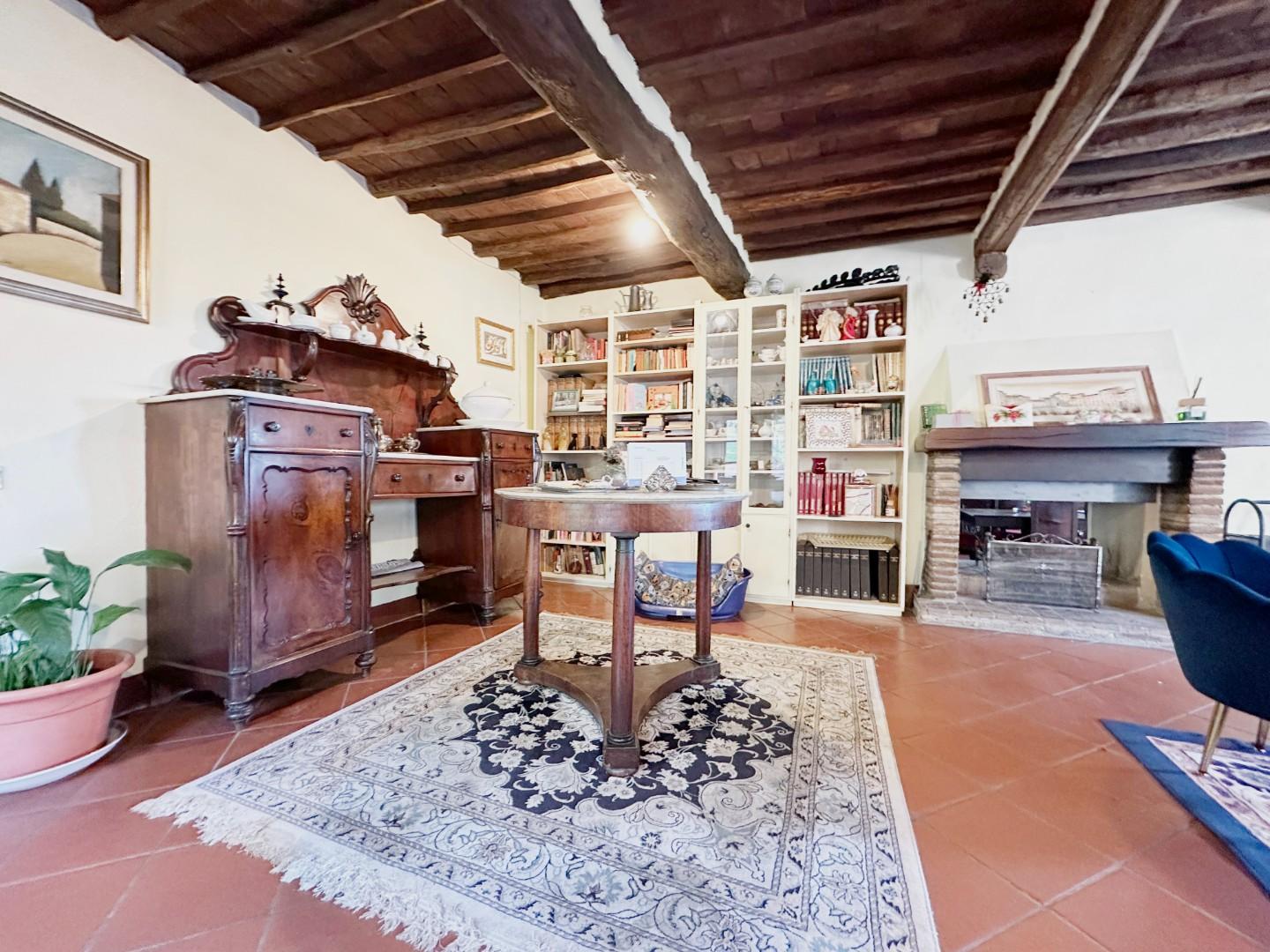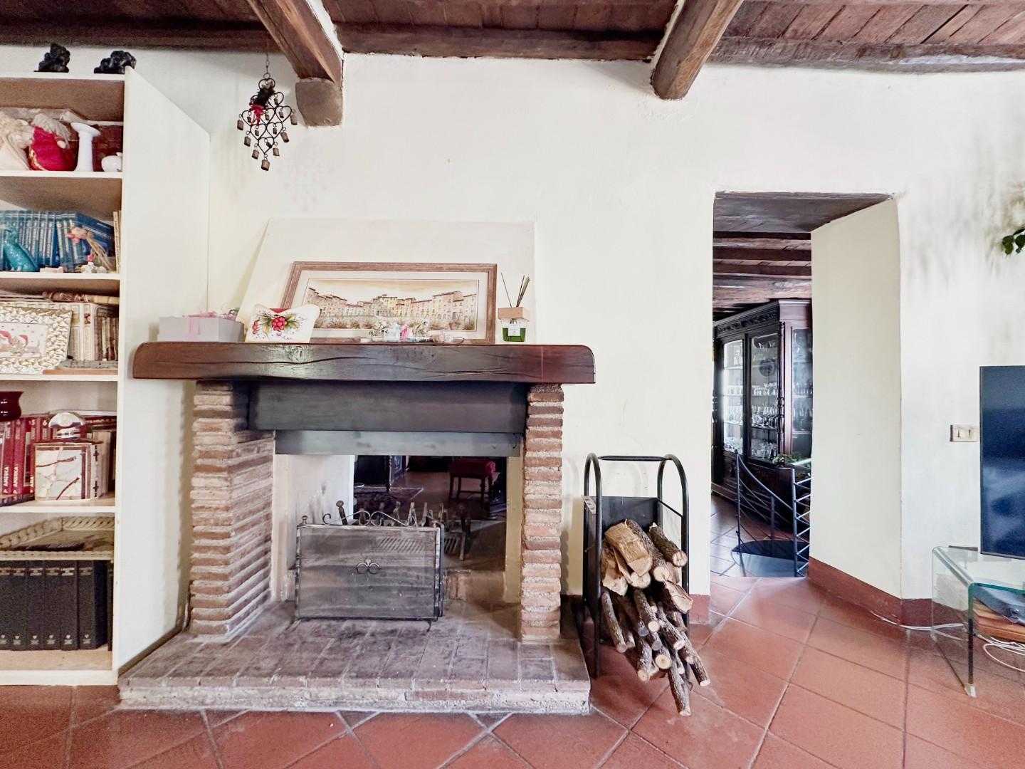 Al piano terra, lingresso, ampio soggiorno con un elegante camino bifacciale che lo separa armoniosamente dalla sala da pranzo, cucina abitabile, dotata di un caratteristico forno a legna, uno studio/dispensa e un bagno.