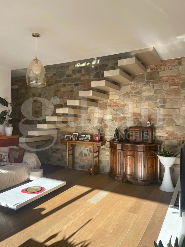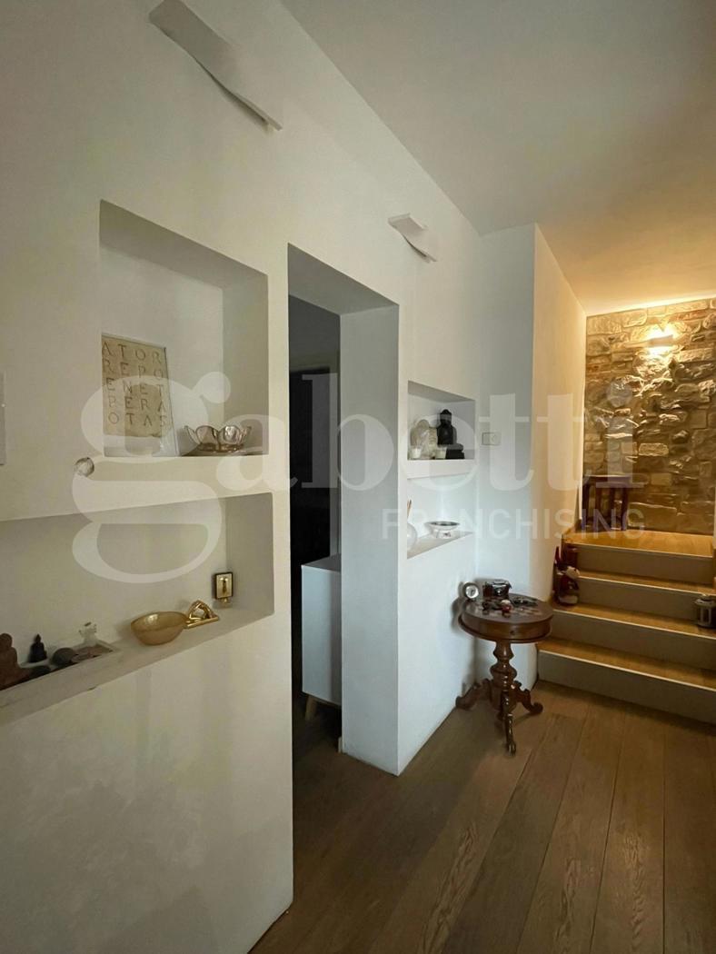 L'immobile si compone di ingresso al piano terra in ampio disimpegno con ripostiglio, zona giorno, con camino bi facciale, caratterizzata da elementi in sasso e pietra e un'ampia vetrata sul cortile ideale per pranzi e cene all'aperto, e ampia cucina abitabile e un bagno; Tramite delle scale di design si accede al primo piano dove si sviluppa la zona notte composta da una grande camera da letto con cabina armadio e bagno privato, seconda camera da letto dalla quale e possibile ricavare due camere e cabina armadio, e terzo bagno.